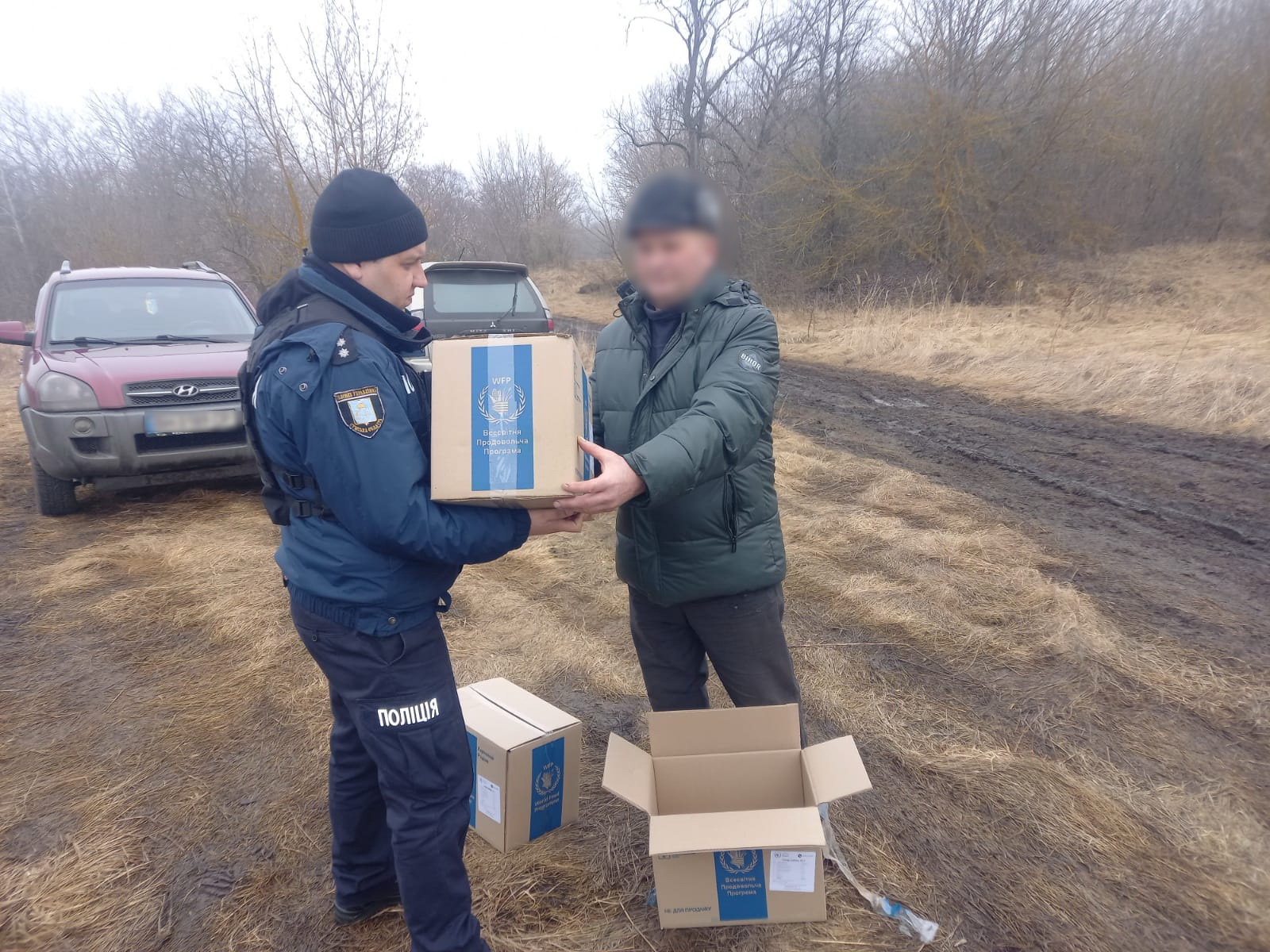 Через погодні умови та відсутність транспортного сполучення жителі віддалених сіл, переважна більшість з яких - особи похилого віку, не мають змоги в повній мірі користуватися всіма суспільними благами, а тому поліцейські та небайдужі громадяни вирішили їм допомогти. Так, продуктові набори на службовому автомобілі було доправлено до населення, а деякі з них правоохоронці спільно з активістами розносили власноруч вже без допомоги транспорту.