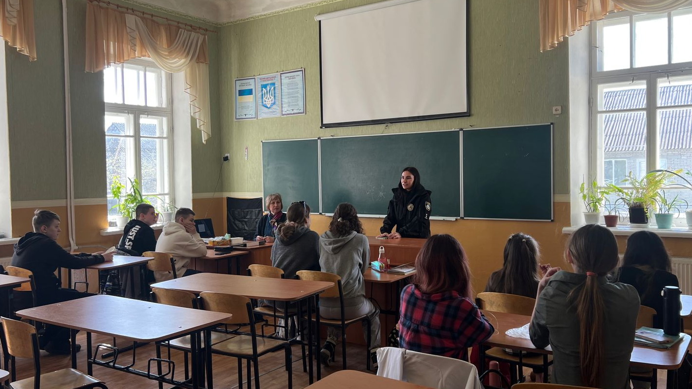 Співробітники поліції завітали до учнів одного з місцевих закладів загальної середньої освіти та обговорили алгоритм дій у різних екстрених ситуаціях. Крім цього, згадали правила безпечного поводження на дорозі, пожежної безпеки, поведінки як вдома, так і у громадських місцях, а також правила мінної безпеки.
