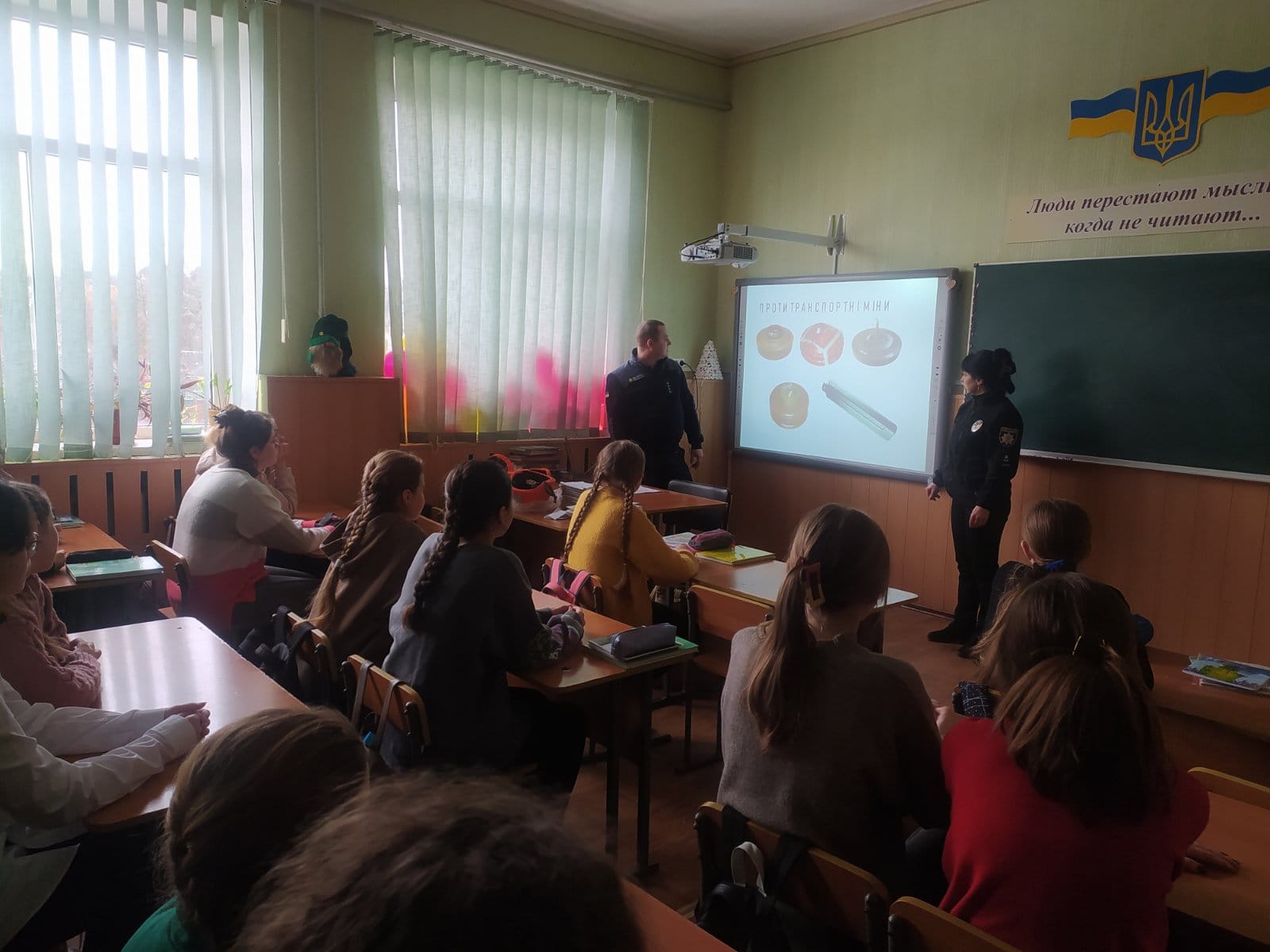 В ході зустрічі гості розповіли дітям про основи мінної безпеки, за допомогою наочної презентації познайомили учнів з найпоширенішими видами вибухових пристроїв, а також правилами поводження при виявленні підозрілих предметів.