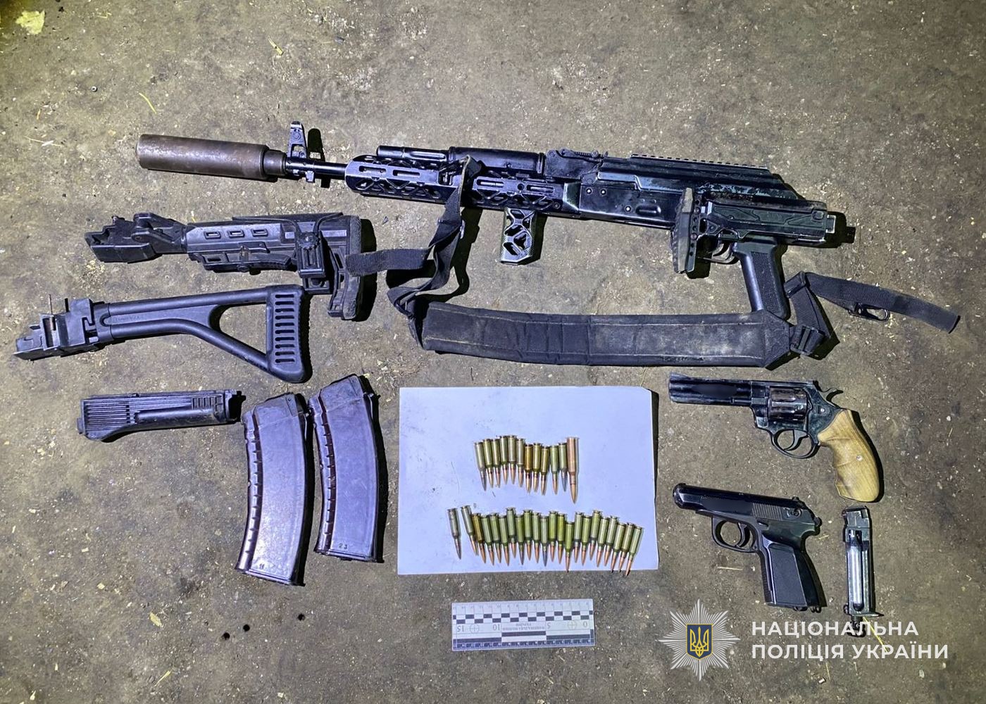 Під час обшуку у домоволодінні підозрюваного правоохоронці виявили зброю та набої різного калібру. Усе знайдене було вилучено та направлено на експертне дослідження.