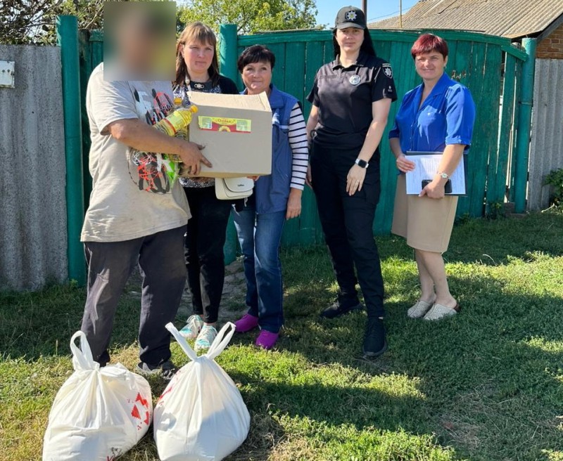 Інспектор ювенальної превенції Охтирського районного відділу поліції спільно із соціальними працівниками відвідали родину, що перебуває у складних життєвих обставинах та привезли їм гуманітарну допомогу.