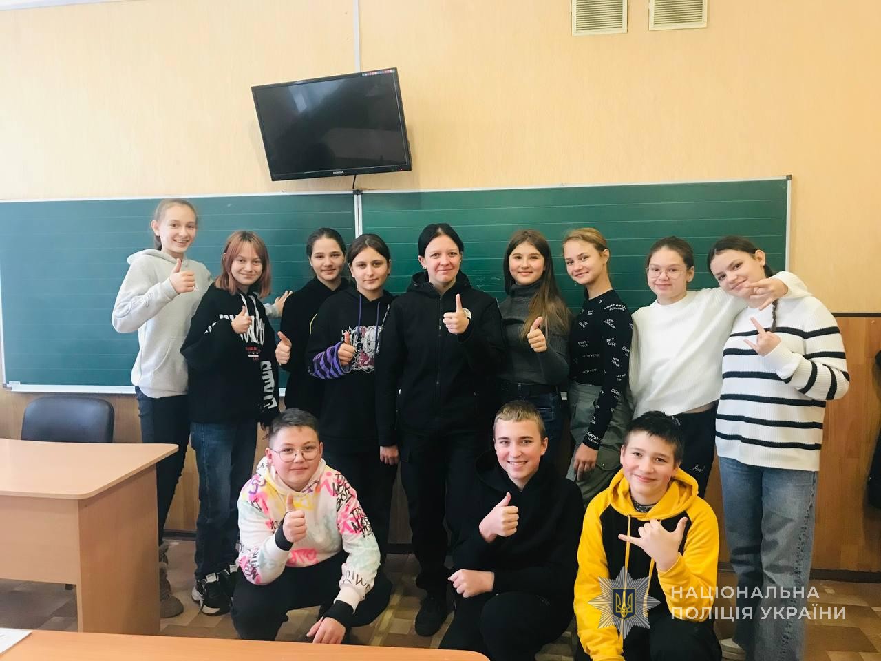 Щоб діти змогли краще закріпити знання, поліцейські моделювали різні ситуації, а школярі швидко виконувала поставлені їм завдання.