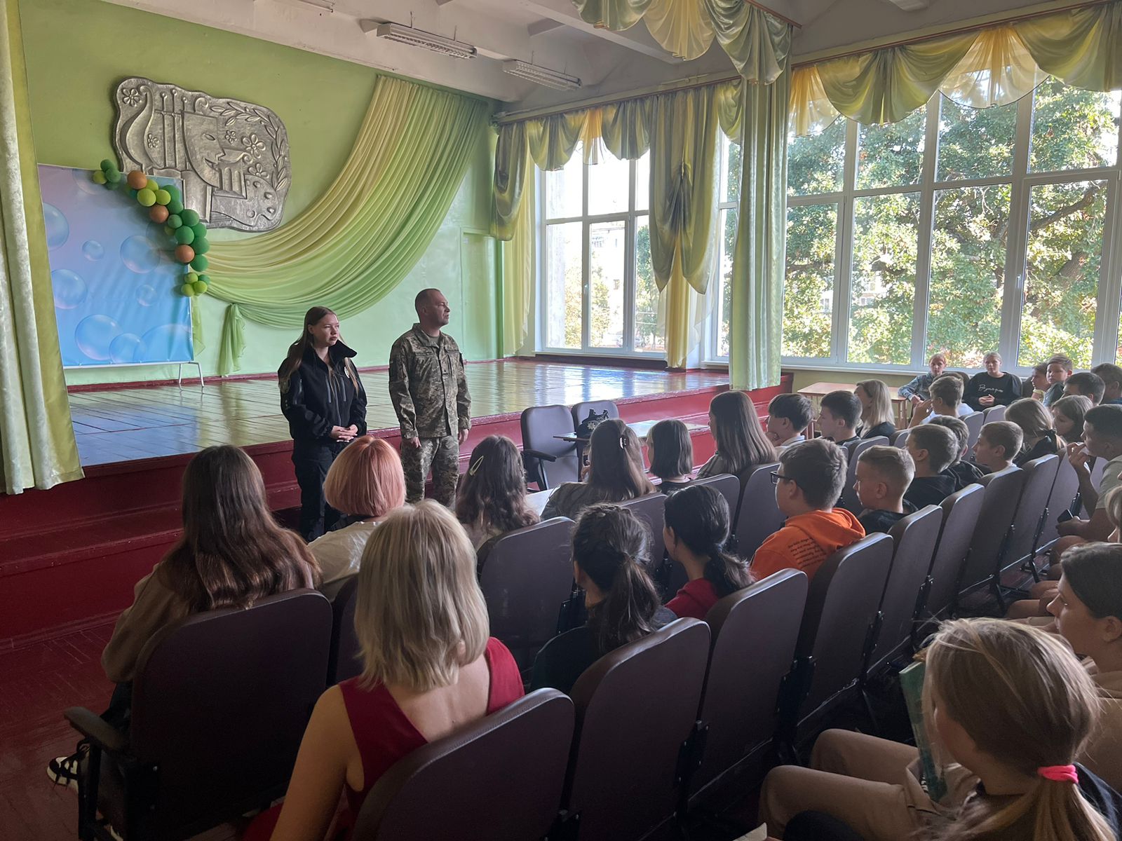 Запрошені військовослужбовці та представники ДСНС також розповіли учням специфіку своєї службової діяльності, цікаві історії зі служби та умови праці.