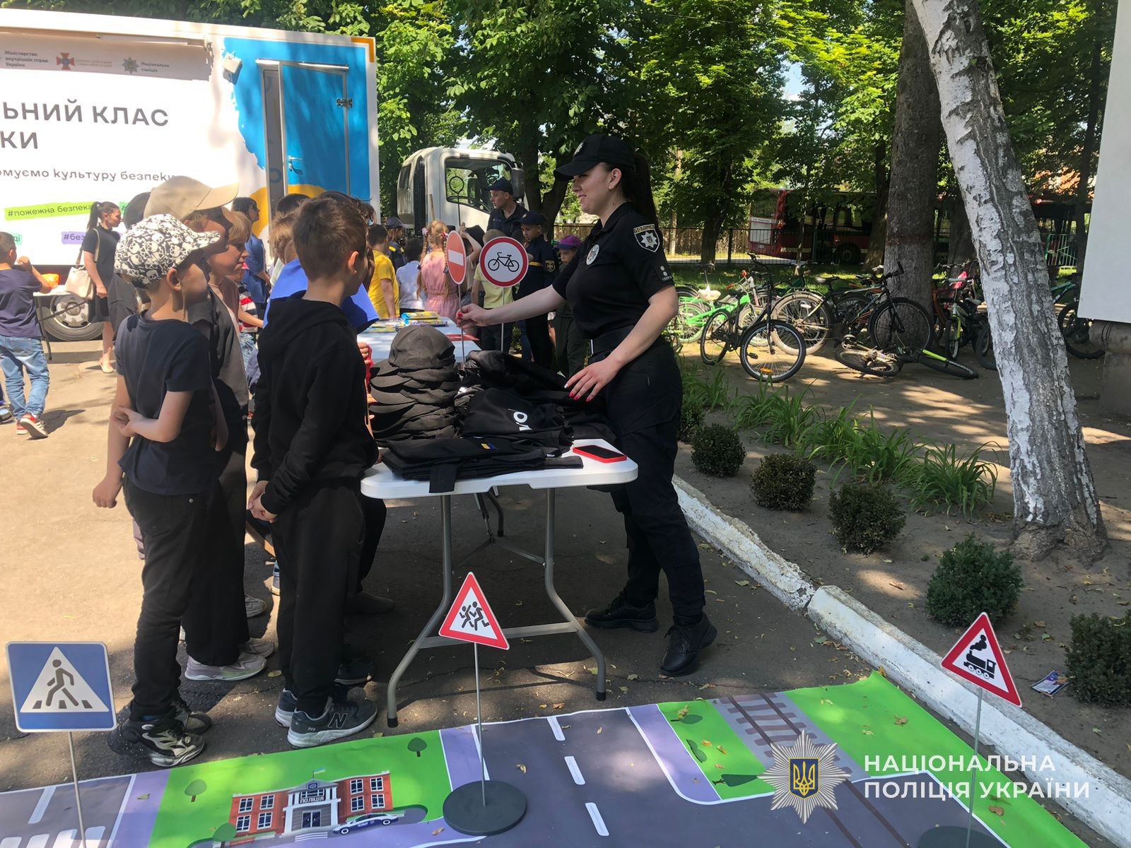 Для того, щоб захід був не лише інформативним, а й цікавим та наочно пізнавальним, поліцейські та рятувальники використовували можливості "Мобільного класу безпеки". Разом з правоохоронцями діти знайомилися та вивчали дорожні знаки та дорожню розмітку, моделювали конкретні ситуації на імітованій проїзній частині та разом знаходили їх вирішення, як учасники дорожнього руху.