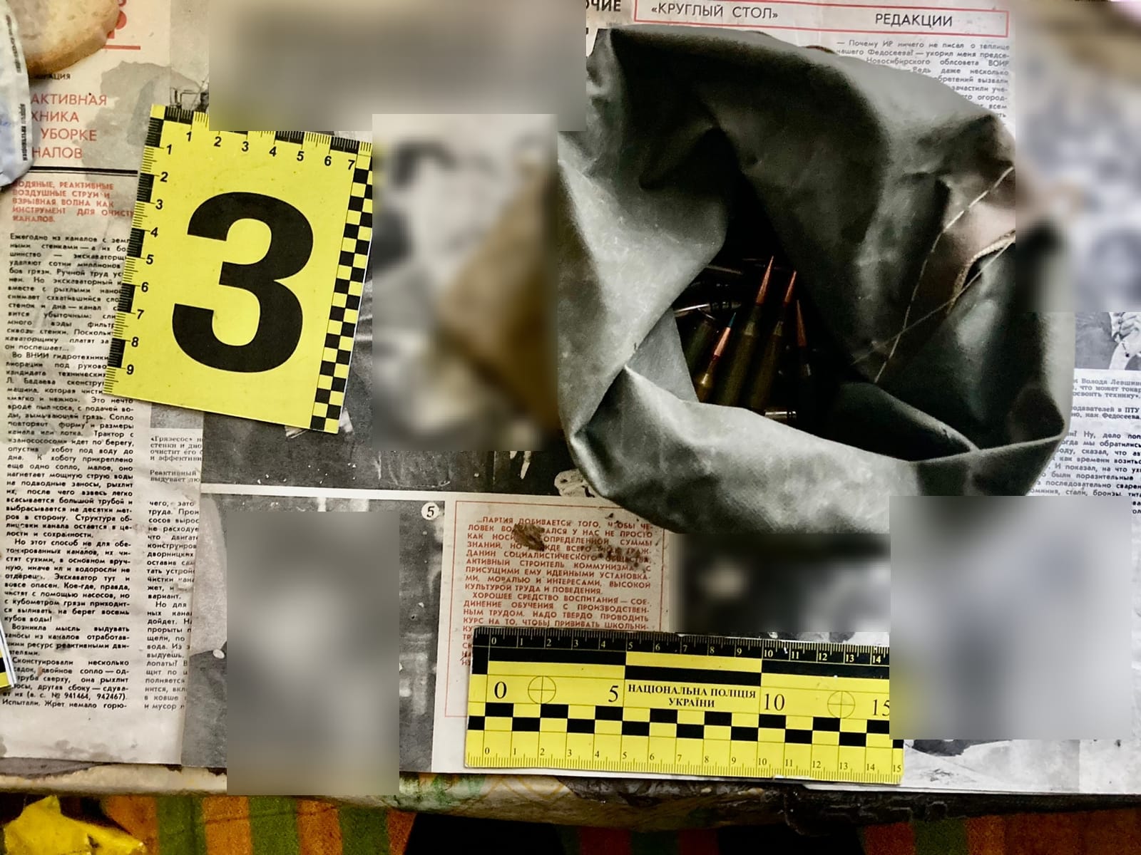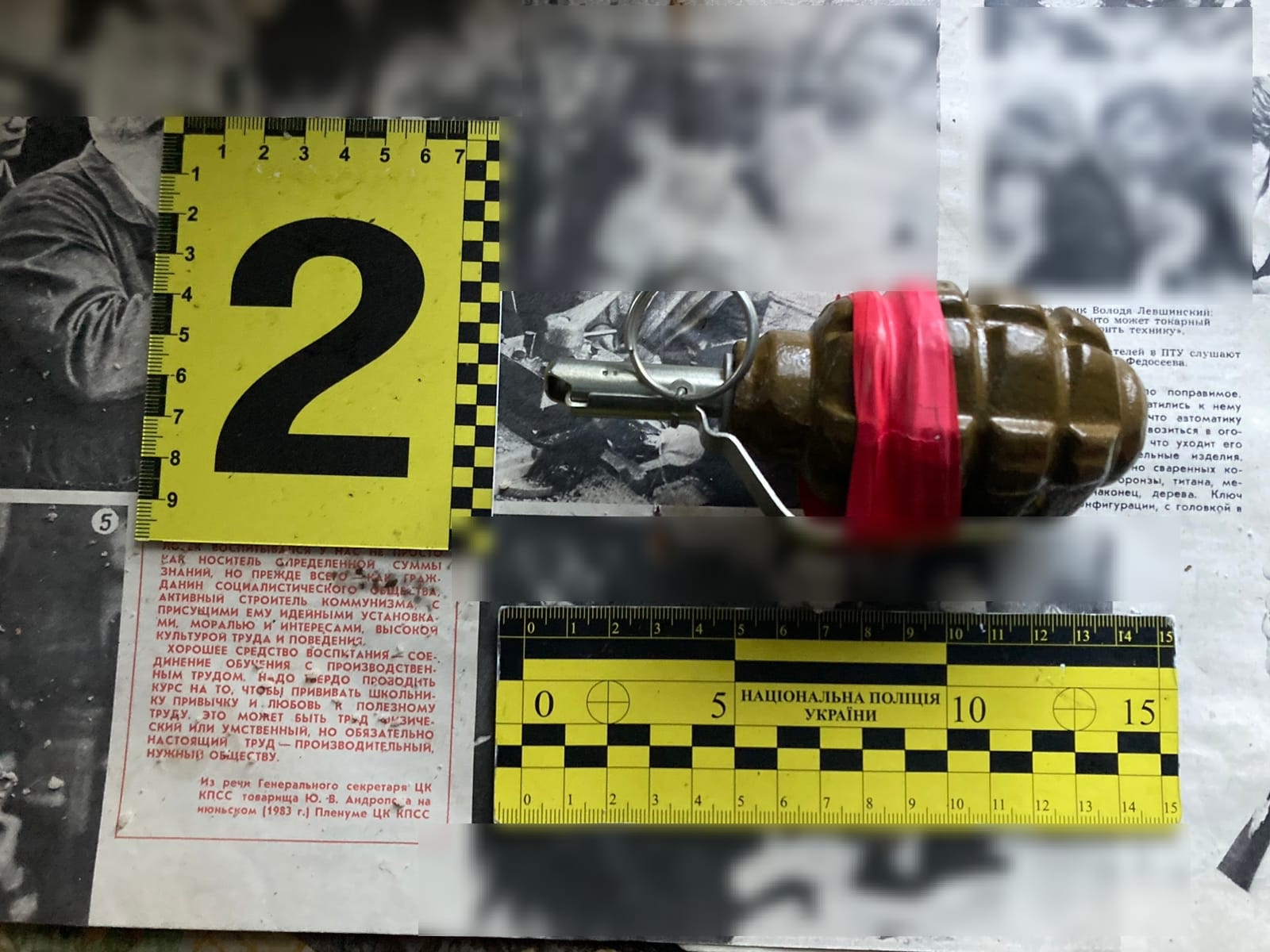 Під час якого виявили та вилучили у неодноразово судимого 44-річного чоловіка паперовий пакунок з подрібненою речовиною, рослинного походження, зовні схожою на канабіс та синтетичний мішечок з набоями калібру 5,45 в кількості 52 штуки та гранатою Ф-1.