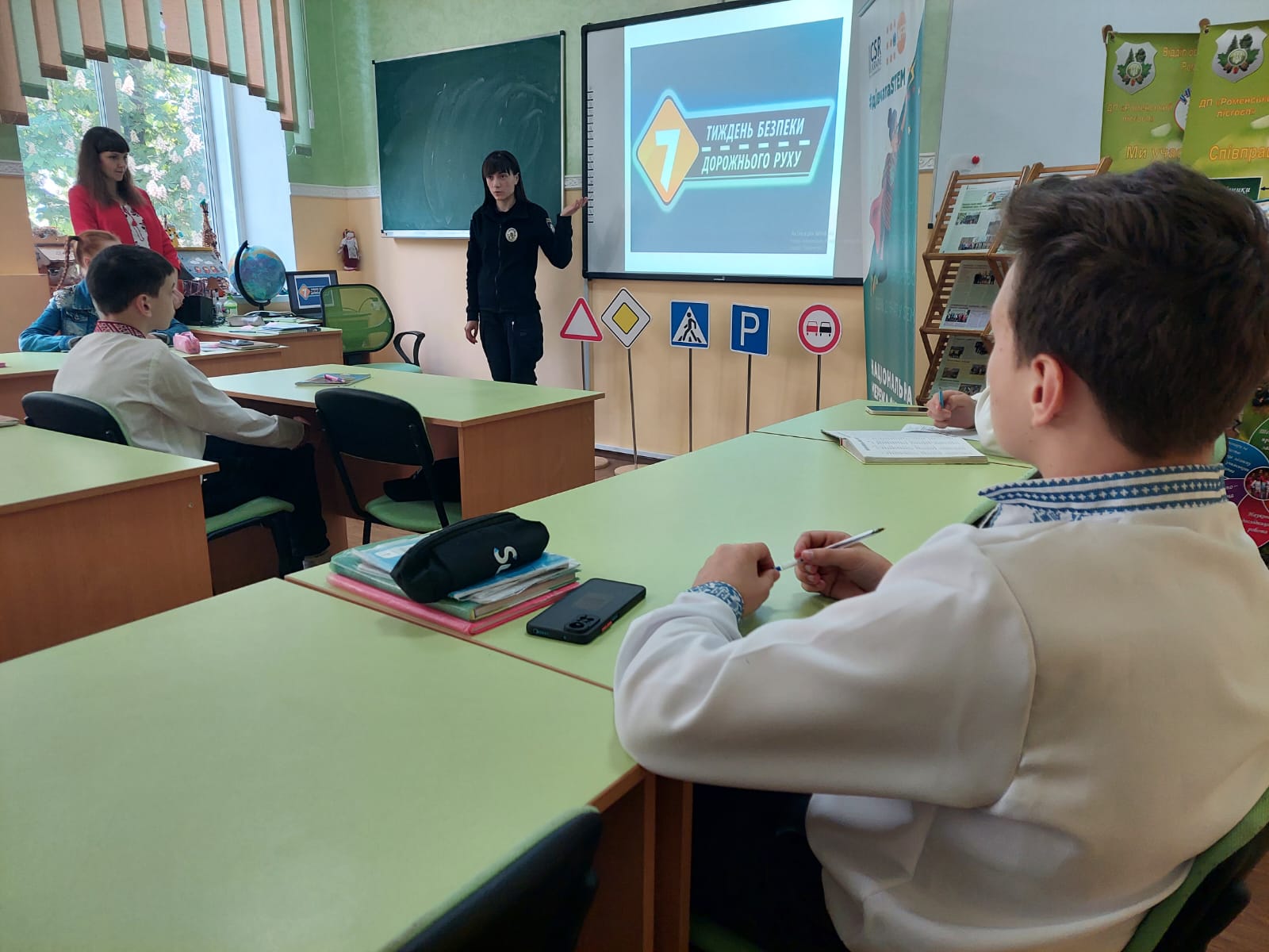 Також, цього дня з аналогічним візитом до школярів Глинського ліцею завітали поліцейські офіцери громади Роменського районного відділу поліції. Правоохоронці спершу привітали дітей зі святом вишиванки, а далі закликали дітей бути уважними і обережними, проводити своє дозвілля подалі від доріг, переходити проїзну частину лише у відведених для цього місцях та ніколи не перебігати дорогу перед транспортом, що наближається.