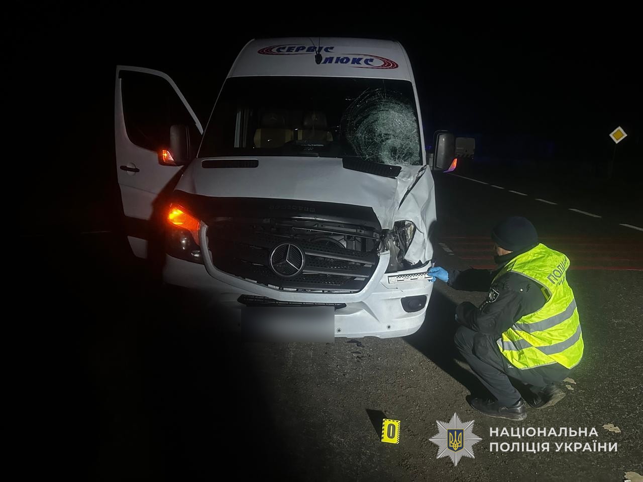 Як з’ясували правоохоронці, 46-річний водій маршрутного мікроавтобусу марки “Mercedes-Benz” допустив наїзд на 45-річного місцевого жителя села, який перебігав автомобільну дорогу в невстановленому місці. Внаслідок пригоди пішохід загинув на місці події. Транспортний засіб поміщений на штрафний майданчик.