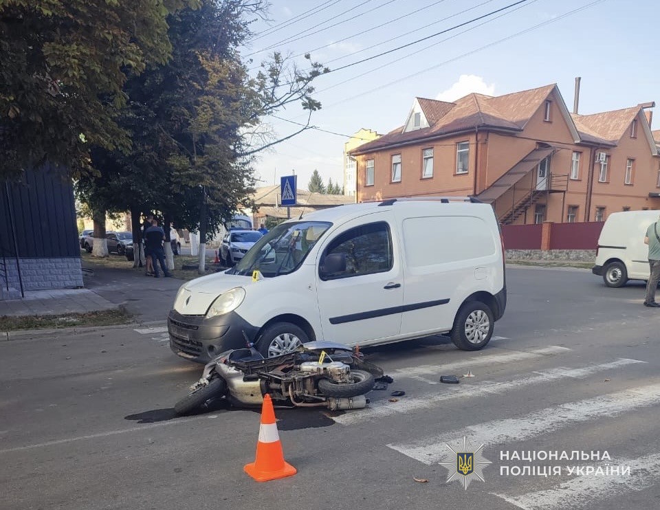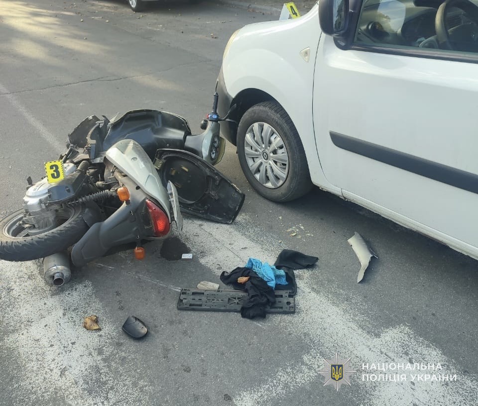 Внаслідок дорожньо-транспортної пригоди водійка двоколісного отримала тілесні ушкодження та була ушпиталена до лікарні.
