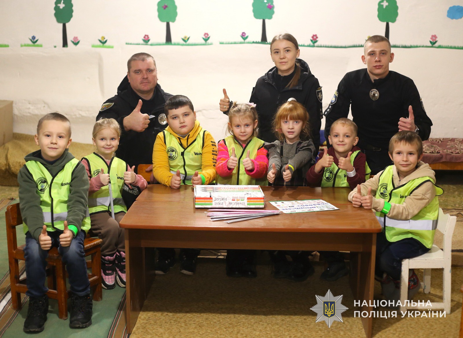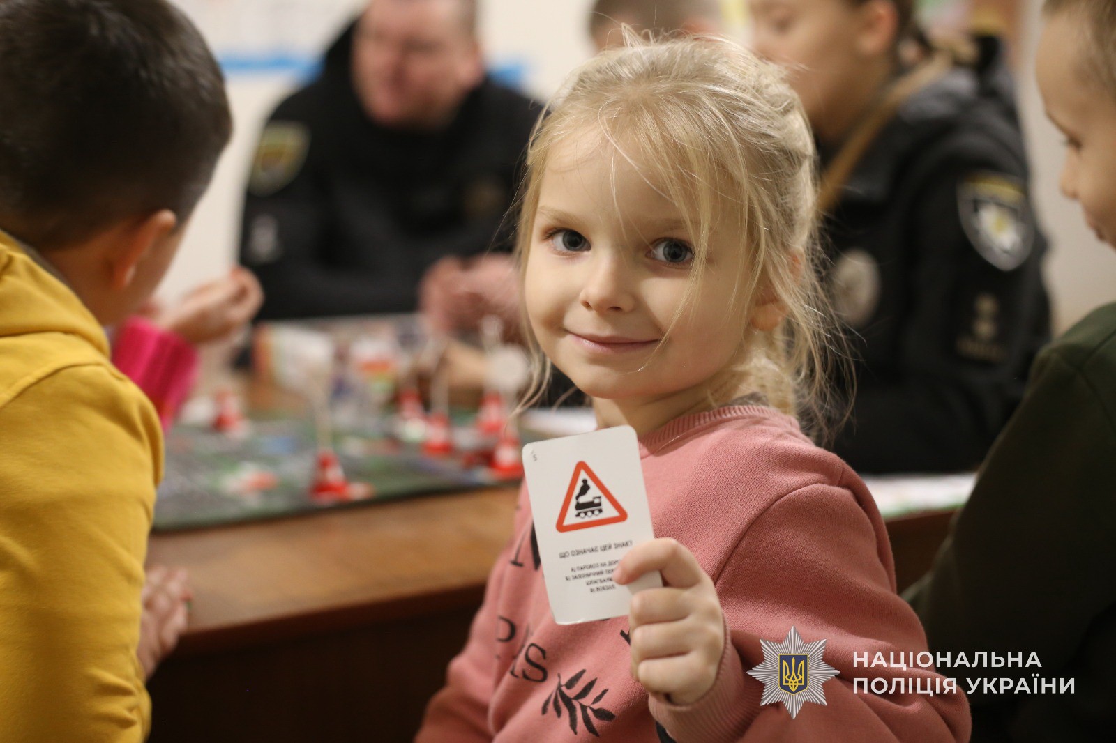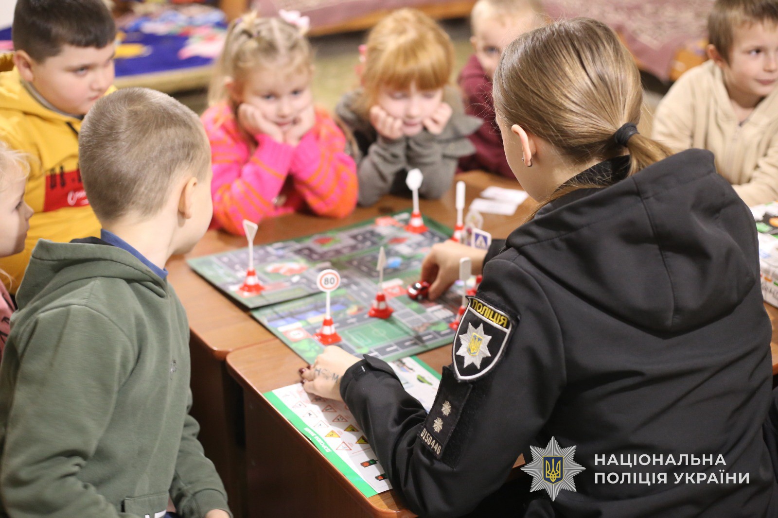 Поліцейські провели пізнавальний урок за допомогою фішок у формі пішоходів і автівок, різних дорожніх знаків та спеціального поля у вигляді проїзної частини дороги з розміткою та тротуарами, а також відповідних карток із запитаннями. Таким чином правоохоронці навчали дітей дотримуватися правил дорожнього руху, не порушувати їх та бути пильними.