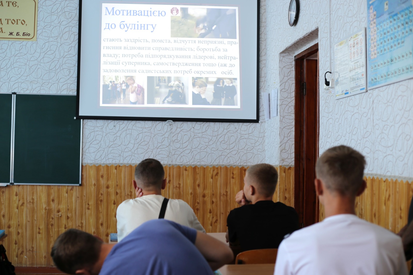 Також, працівники поліції нагадали присутнім про таке негативне явище, як “булінг”. Закликали школярів ніколи не замовчувати про випадки цькування у школі, та негайно інформувати про це дорослих або ж телефонувати в поліцію за номером 102.