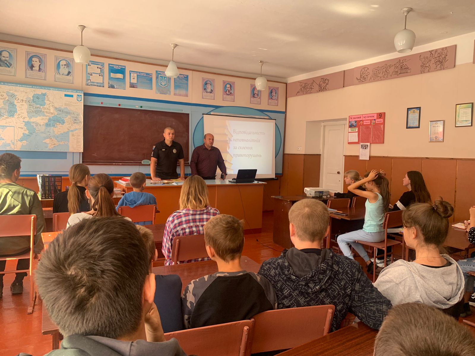 Поліцейський офіцер громади Роменського районного відділу поліції Владислав Голік відвідав Перекопівський ліцей та пояснив старшокласникам про кримінальну та адміністративну відповідальність неповнолітніх за ті чи інші правопорушення. Роз'яснив, яка є різниця між кримінальною та адміністративною відповідальністю. Окрім того, розповів про заходи впливу, які застосовуються до неповнолітніх порушників.