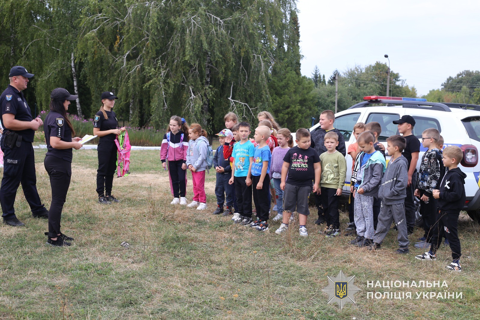Працівники поліції наочно продемонстрували дітям відповідні жилетки й роздали спеціальні браслети. По завершенню заходу школярі мали можливість ознайомитися зі службовим транспортом та спецзасобами, які використовуються у службовій діяльності поліції.