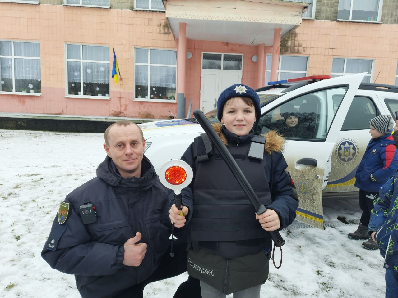 Найзахоплюючою частиною заходу для учнів стала фінальна частина зустрічі. Адже кожен міг спробувати себе у ролі справжнього поліцейського, сівши за кермо службового автомобіля, увімкнувши проблискові маячки та примірявши спорядження працівника поліції.