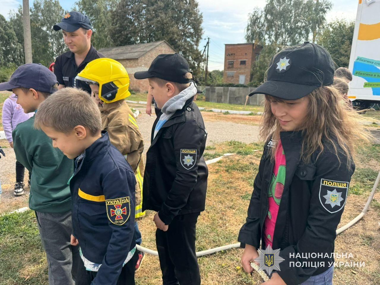 Також учням розповіли про те, які обов'язки виконують поліцейські й рятувальники. Всі бажаючи мали можливість приміряти формений одяг обох підрозділів і побути в ролі правоохоронців та рятувальників.