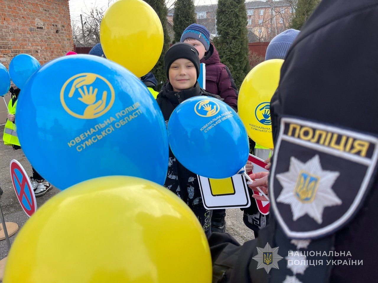 Наприкінці зустрічі поліцейські подарували дітям флікери та роздали учням яскраві патріотичні кульки.
