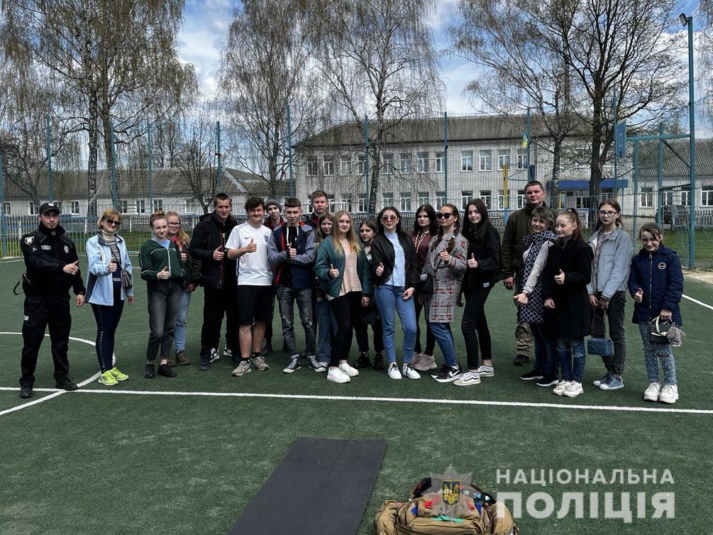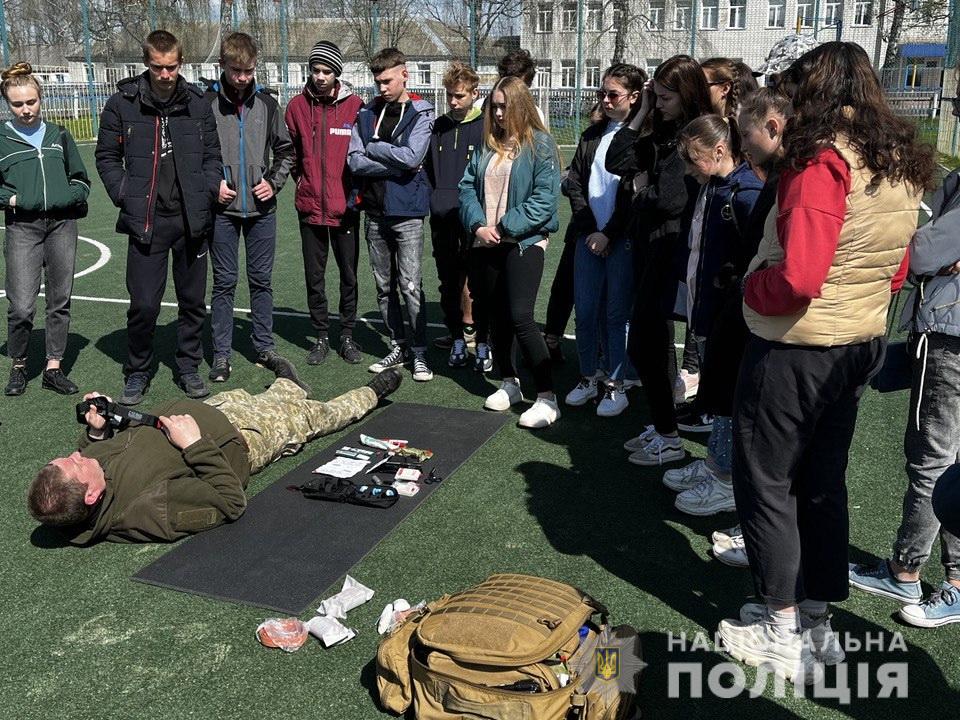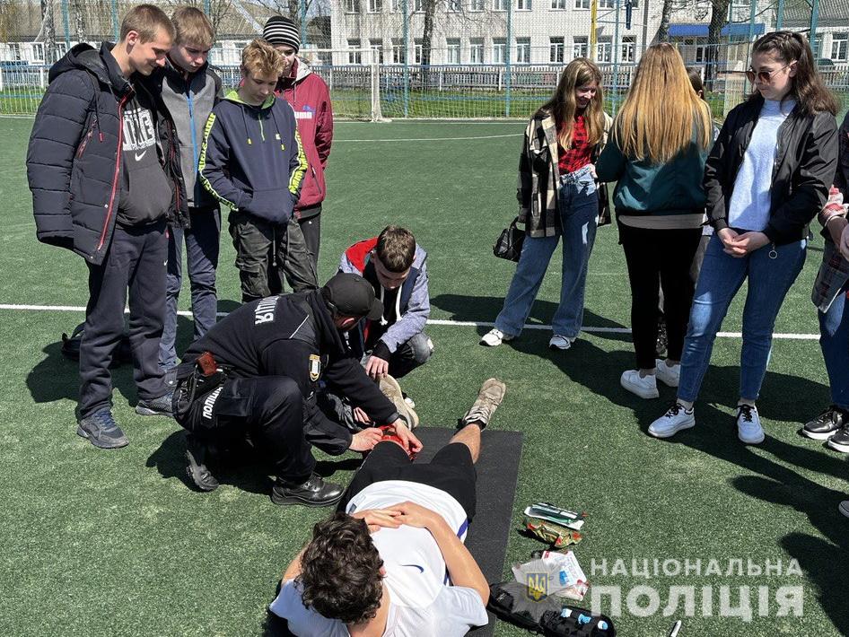 Правоохоронці провели для старшокласників лекцію та практичні заняття з надання першої домедичної допомоги. Під час практичної частини занять учням продемонстрували комплекс дій з моменту виявлення постраждалої особи до передачі її медичним працівникам.