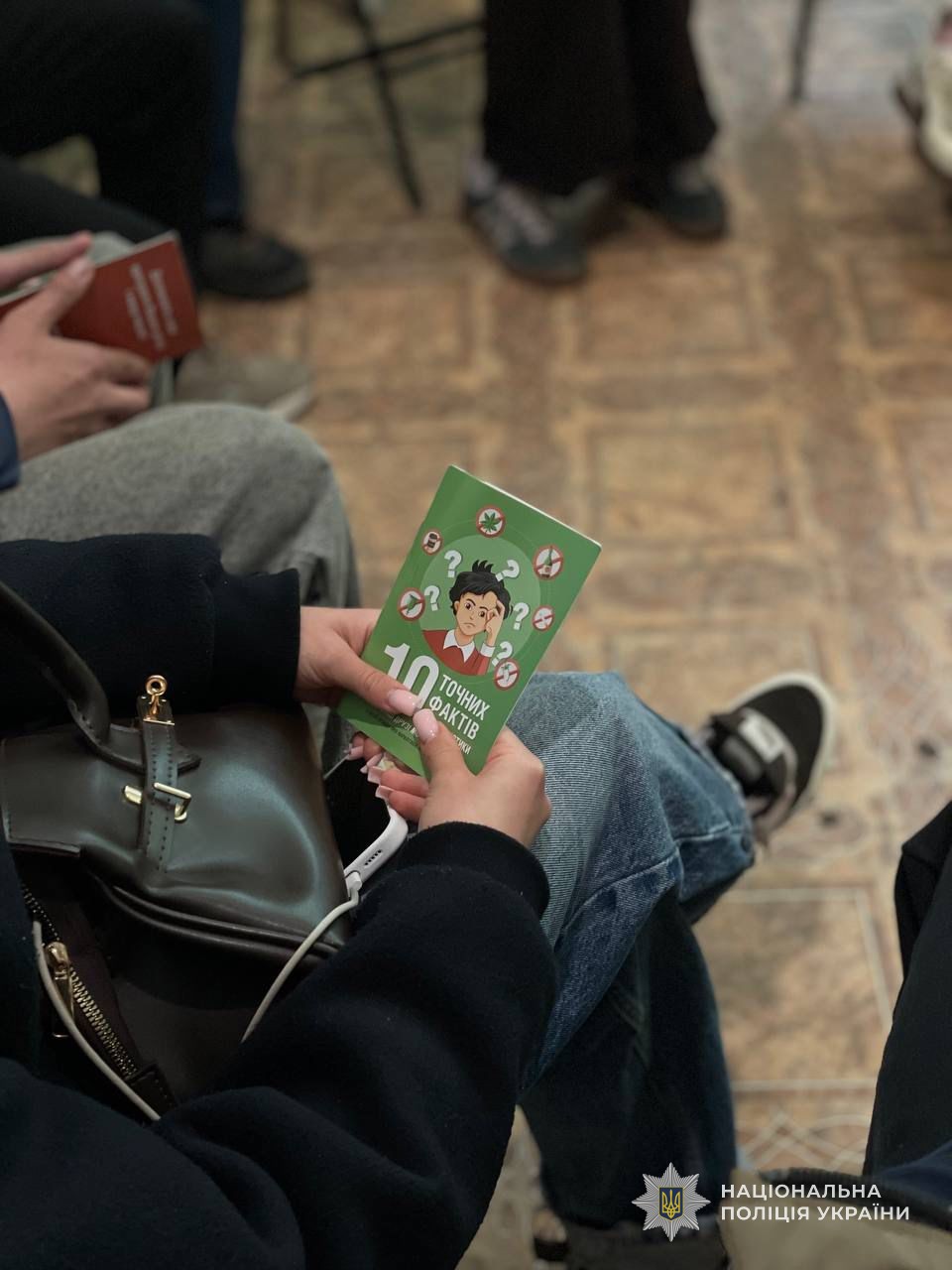 Під час зустрічі поліцейські обговорили з молоддю важливі та чутливі теми. Зокрема, розповіли про негативний вплив наркотичних речовин на організм людини та можливі наслідки їх вживання. Окрему увагу приділили питанням протидії вербуванню, пояснивши, як розпізнати небезпечні пропозиції та уникнути втягнення у протиправну діяльність. Також учасникам заходу нагадали про правила безпечної поведінки в інтернеті, щоб не потрапити в шахрайські чи небезпечні ситуації.
