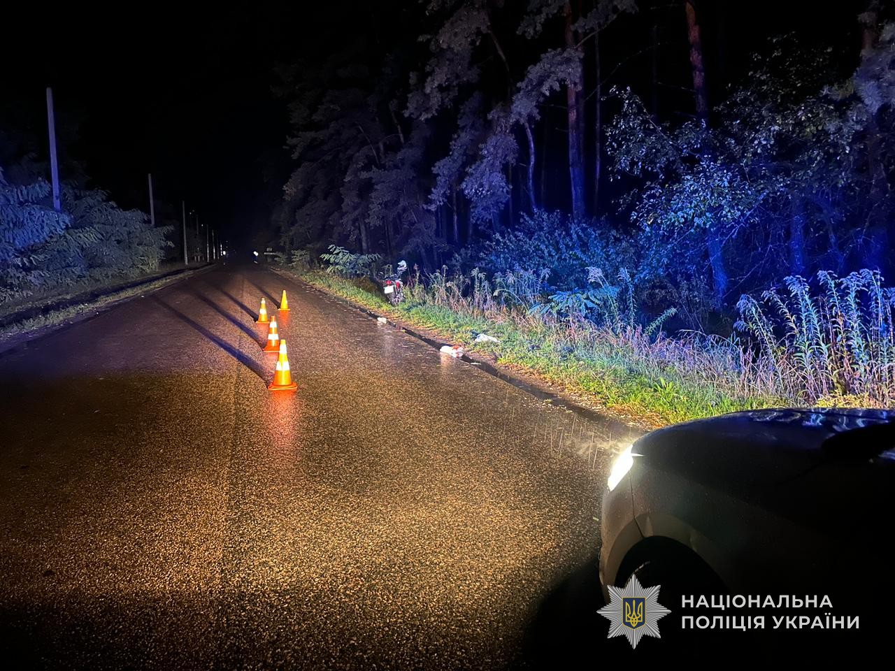 Ще одна ДТП сталася майже в той самий час — близько 19:34 між селом Миронівка та містом Шостка. Поліцейські, які прибули на місце, з’ясували, що 24-річний водій мотоцикла Spark, під час здійснення обгону попутного автомобіля, не впорався з керуванням і допустив наїзд на 70-річного пішохода, який рухався узбіччям у зустрічному напрямку. Чоловіка госпіталізували.