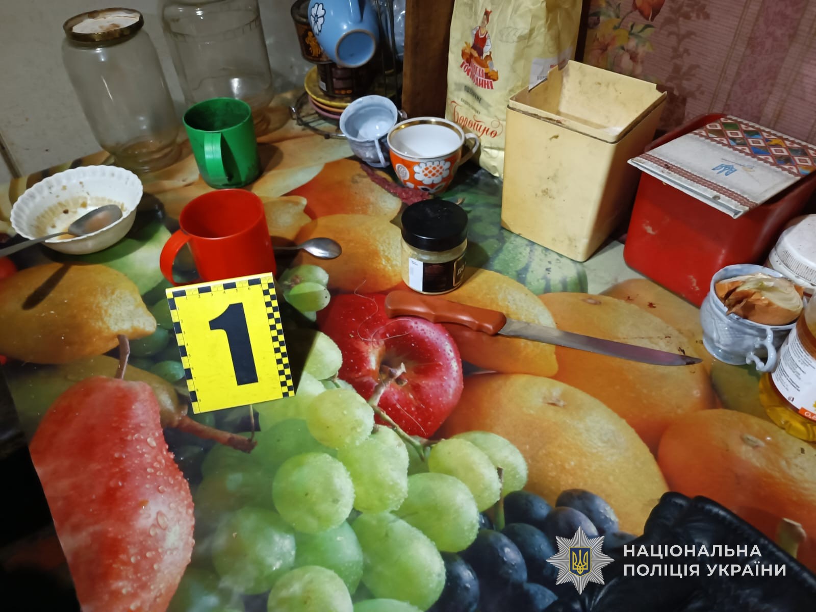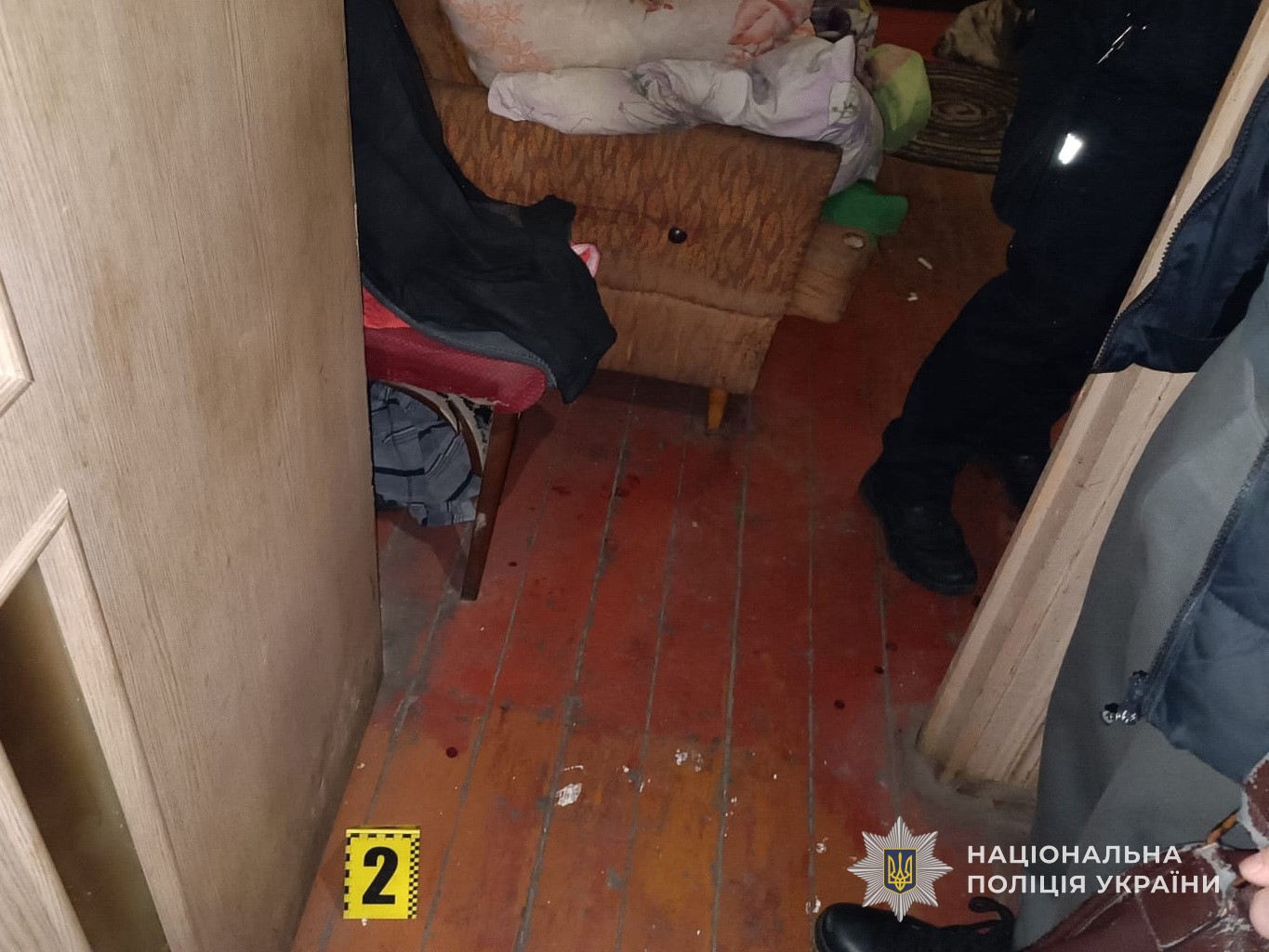 Поліцейські затримали зловмисника в процесуальному порядку. З місця події вилучено знаряддя вбивства та інші речові докази.