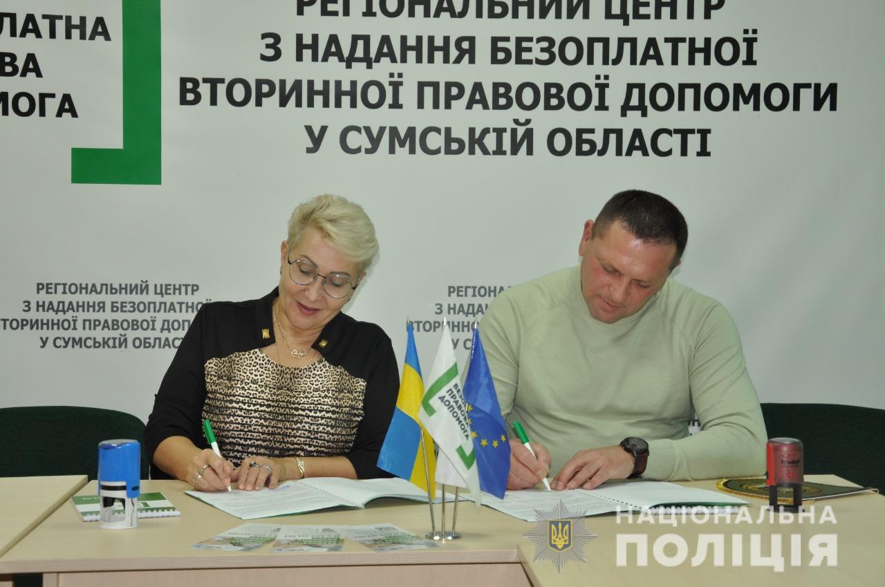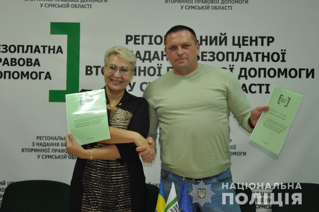 Меморандум підписали голова громадської організації «Сумська обласна ветеранська організація Асоціації ветеранів МВС України» Дмитро Демченко та директор Регіонального центру з надання безоплатної вторинної правової допомоги в Сумській області Олена Демченко.