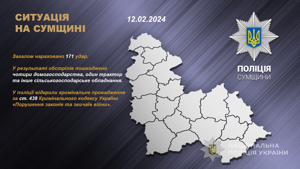Упродовж минулої доби російські війська 26 разів обстріляли територію області. Загалом зафіксовано 171 удар.