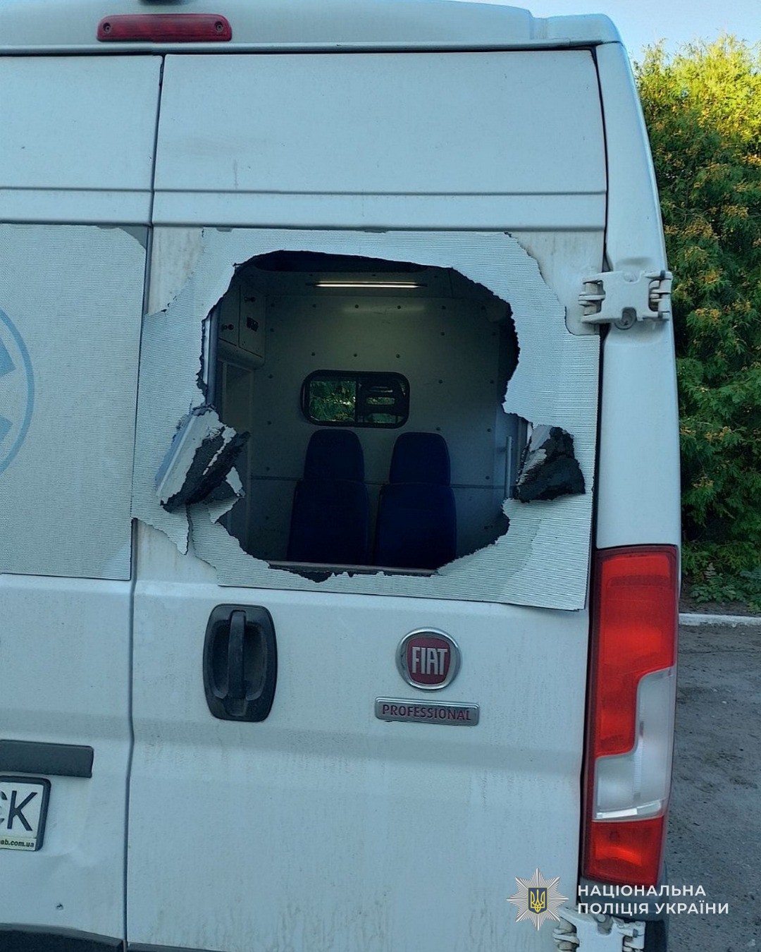 У Великописарівській громаді ворожі безпілотники влучили у цивільний автомобіль та транспорт медиків. Загинув73-річний водій легковика, пошкоджено автомобіль швидкої допомоги.