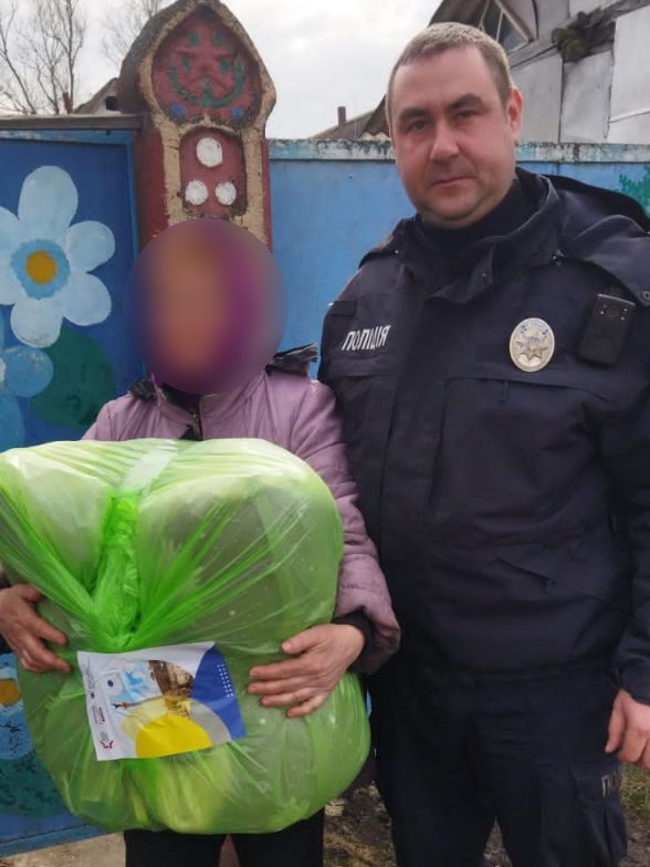 І вже протягом тижня правоохоронці роздавали набори з гуманітарною допомогою всім, хто цього потребує. Особливо літнім людям.