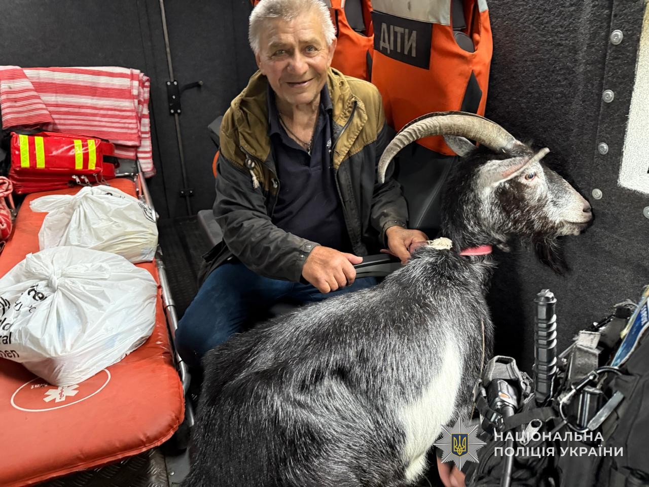Розуміючи важливість порятунку та прив’язаність літньої людини до тварин, поліцейські евакуювали чоловіка разом з його козами.