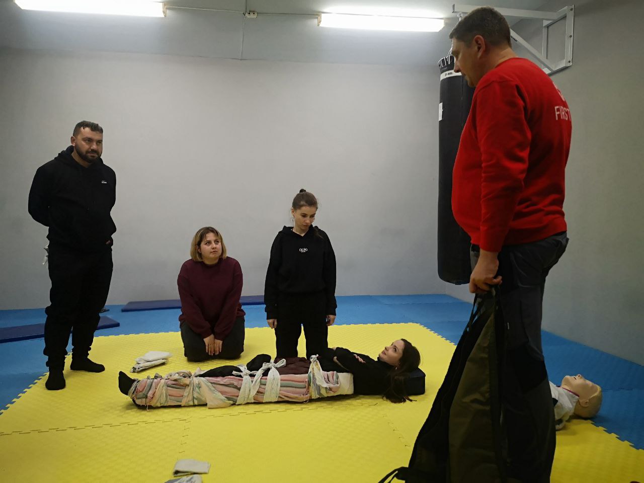 Інструктори продемонстрували як правильно виконувати первинний огляд постраждалого, проведення серцево-легеневої реанімації, способи зупинки кровотечі, надання першої домедичної допомоги при порушенні прохідності дихальних шляхів, непритомності, кровотечах та різних травмах. Крім того нагадали про особливості транспортування потерпілого.