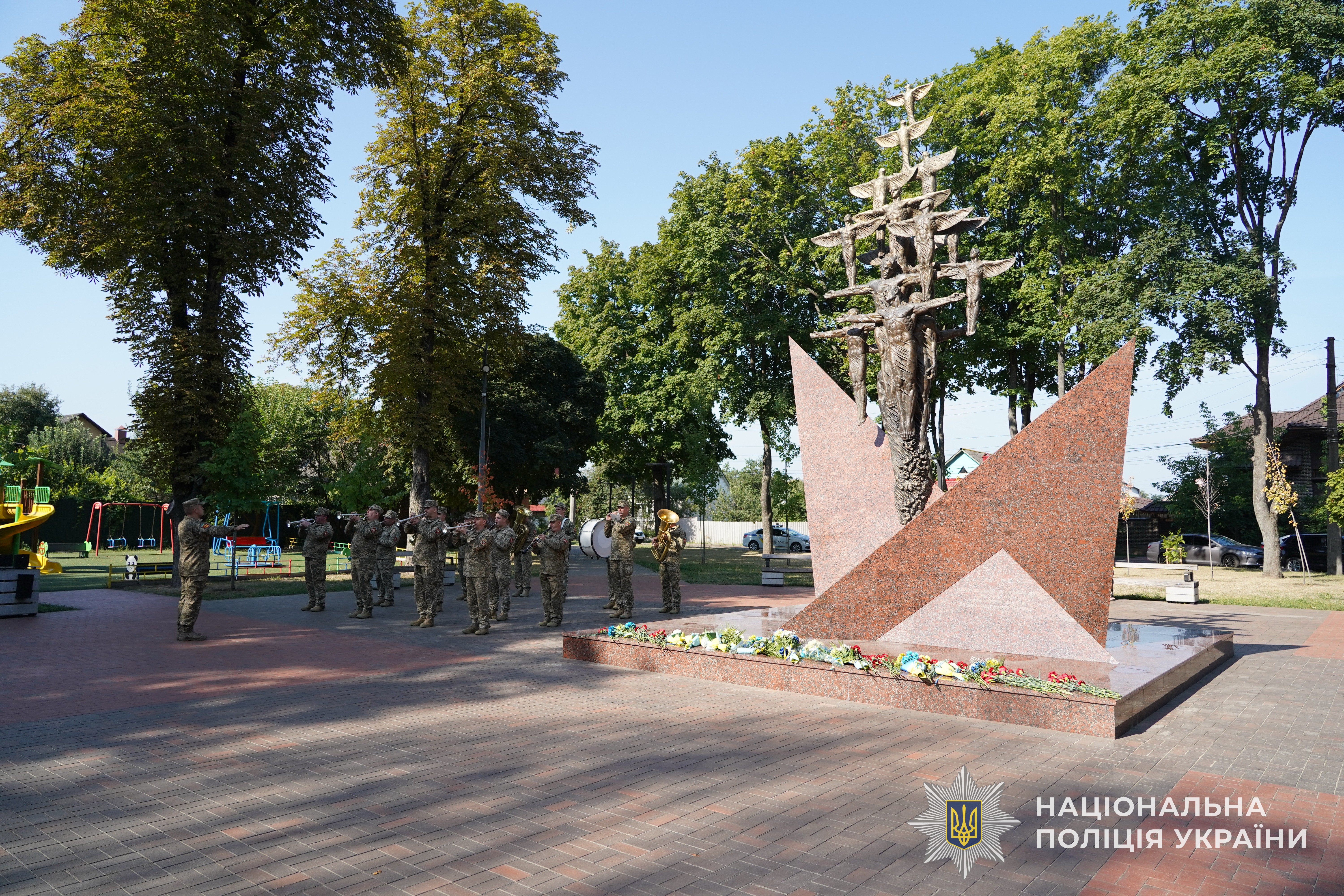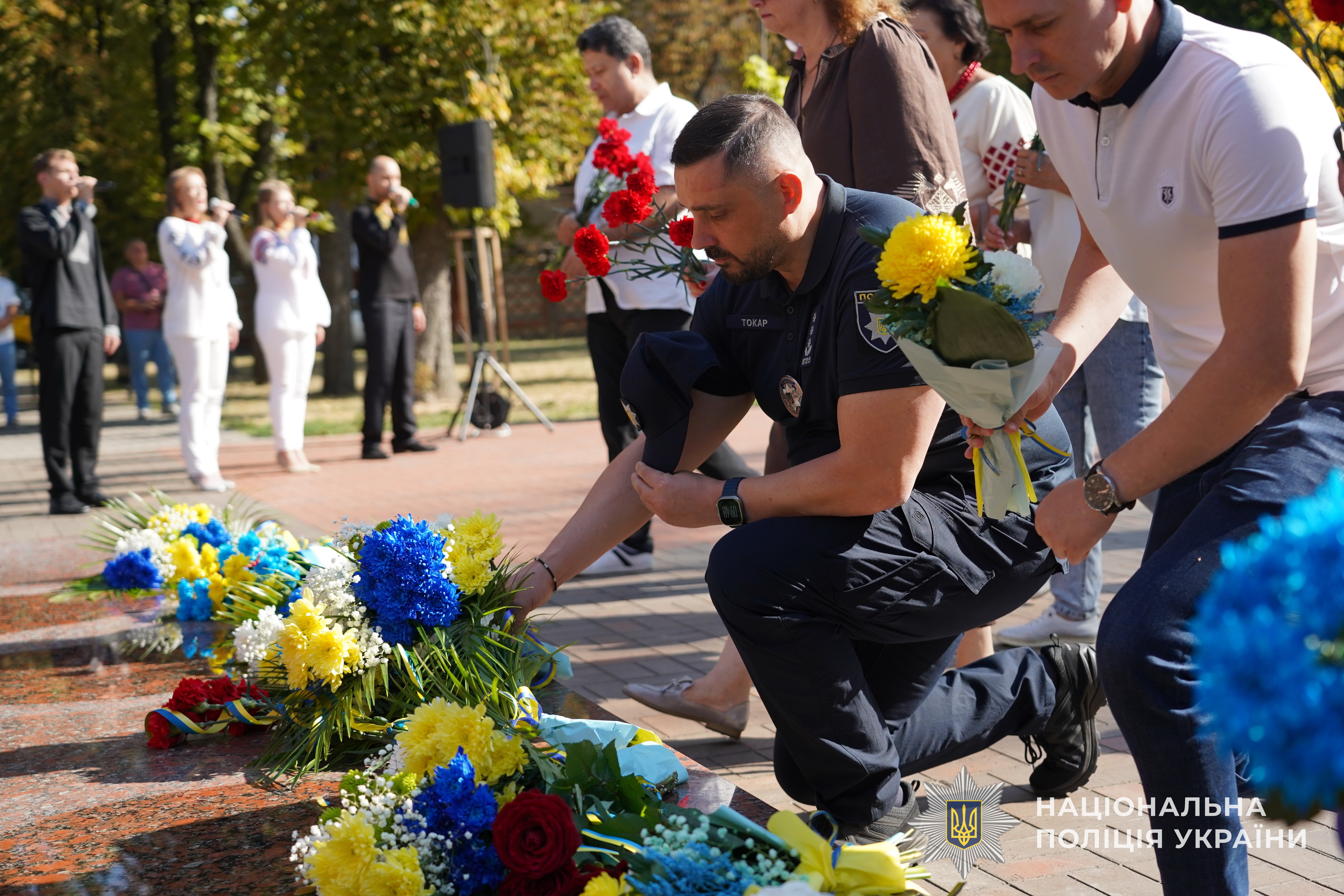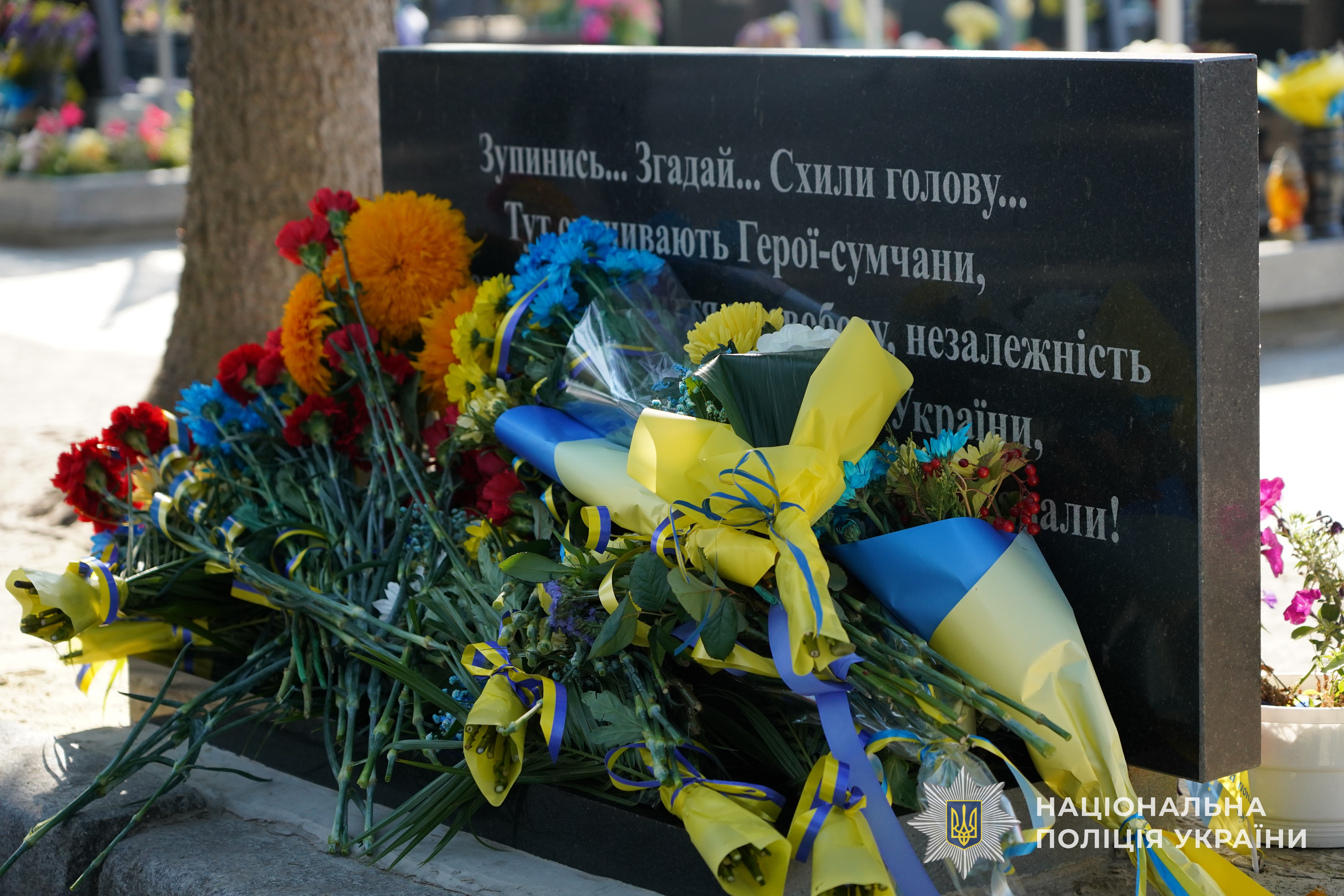Начальник Головного Управління Національної поліції в Сумській області Петро Токар, керівництво міської та обласної влади, прикордонники, рятувальники, військовослужбовці та пересічні громадяни, в знак Великої Шани, поклали квіти до пам’ятників Героїв – Захисників, які загинули захищаючи нашу державу.