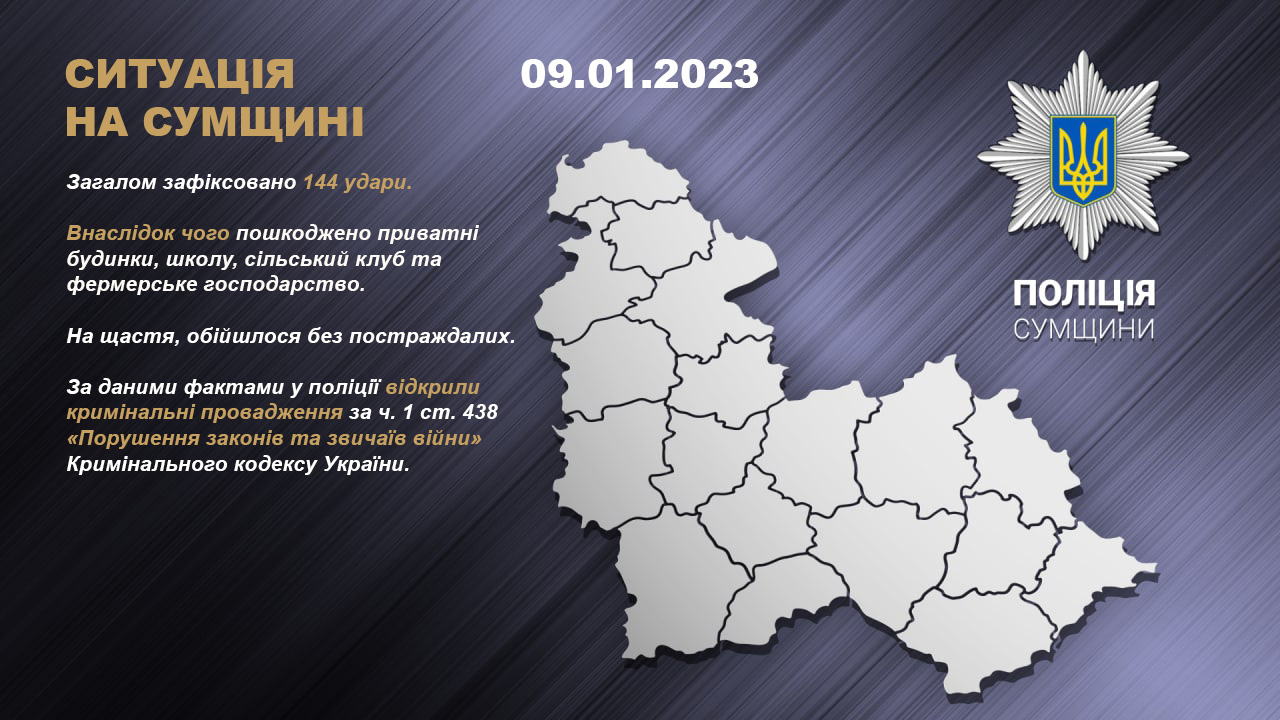 Минулої доби війська рф вкотре обстрілювали територію Сумської області. Загалом нараховано 144 удари.