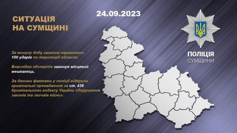 Минулої доби ворожі війська 18 разів відкривали вогонь по населеним пунктам прикордоння області. Загалом нараховано 100 ударів.