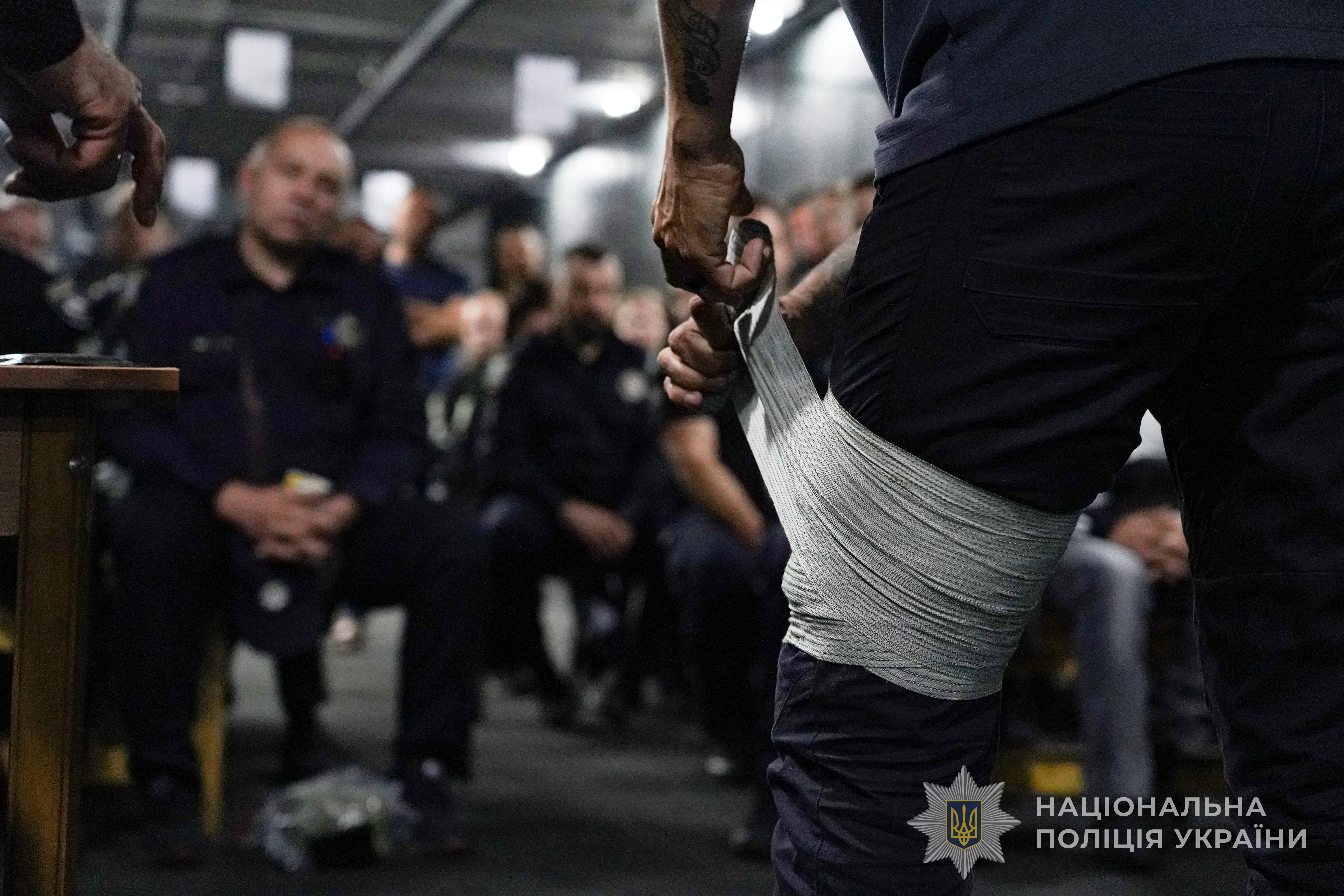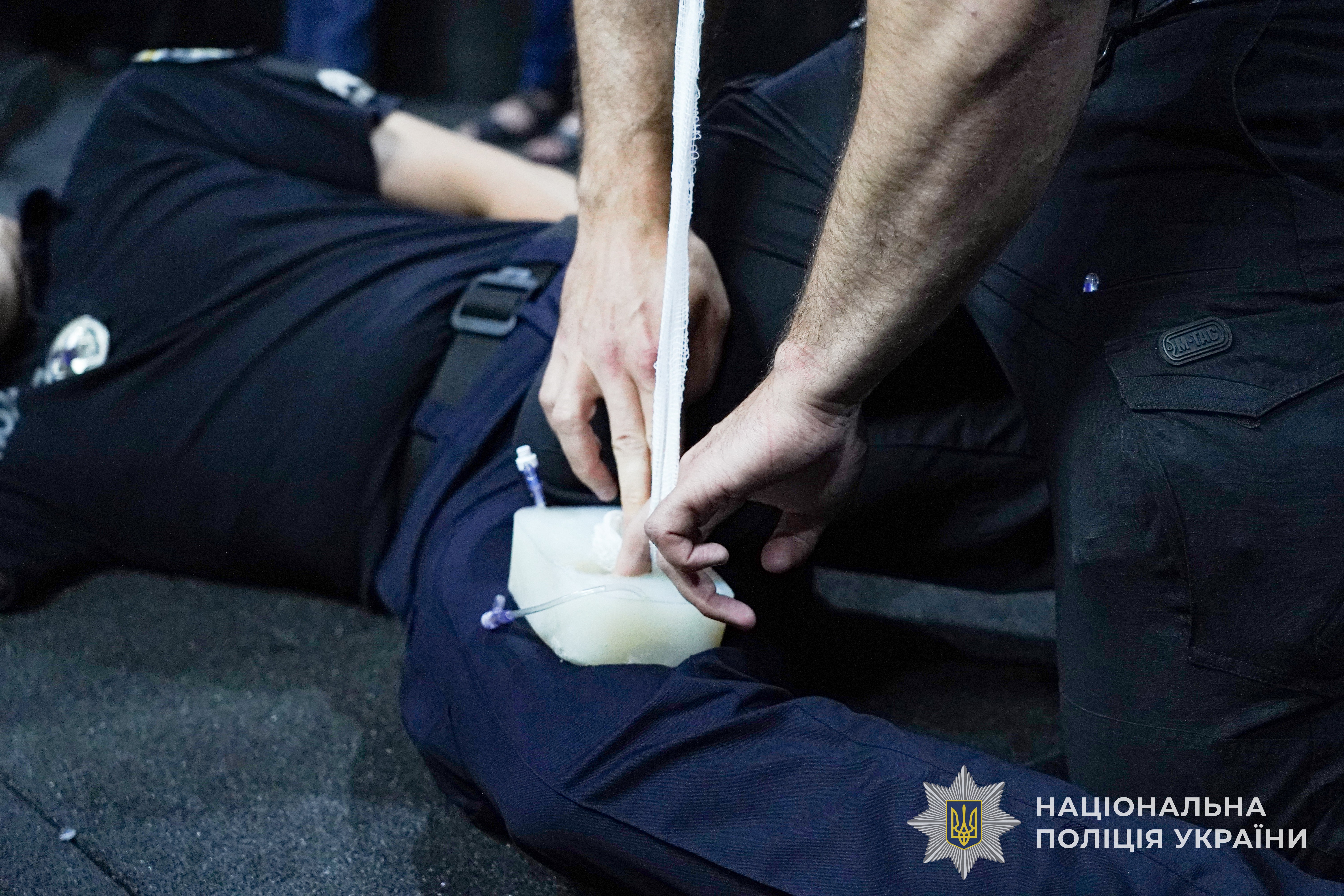 Крім того, під час заняття детально розібрали алгоритми надання допомоги у випадку травматизації кінцівок, що супроводжується масивною кровотечею, правильний порядок дій під час поранень грудної клітини. Усі здобуті навички поліцейські змогли практично відпрацювати.