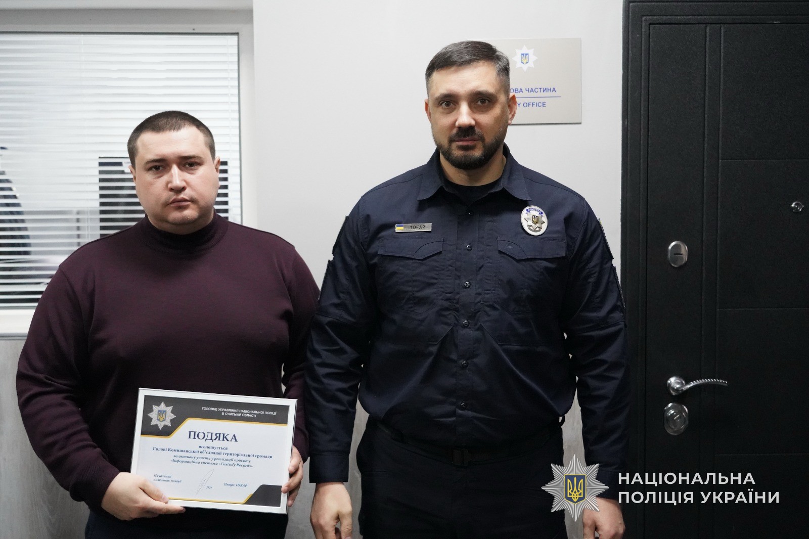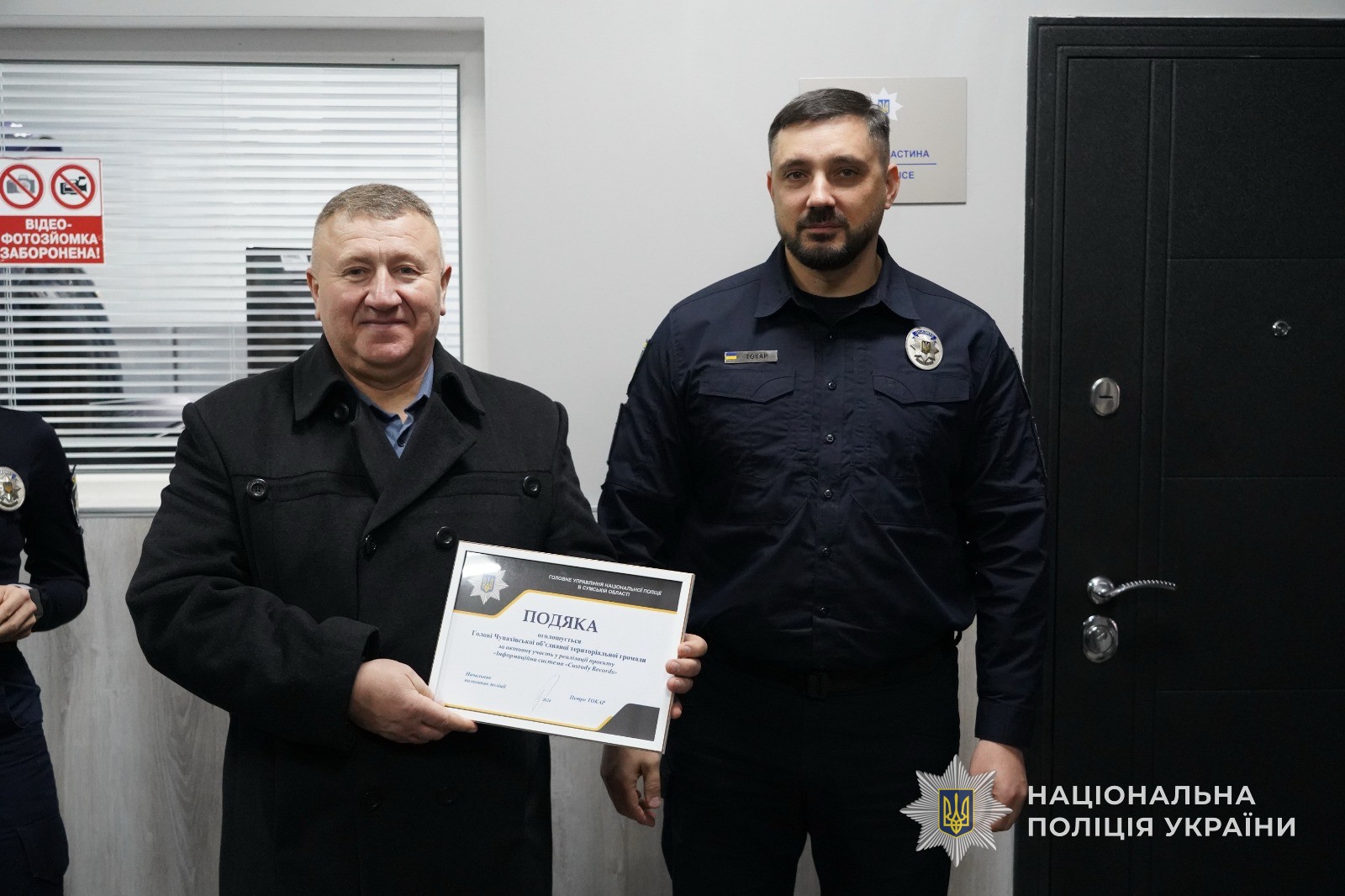 Велику вдячність начальник Головного управління Національної поліції в Сумській області висловив представникам органів місцевого самоврядування, які долучились до цього проєкту і сприяли створенню комфортних умов націлених на якісне надання правоохоронних послуг та дієву комунікацію з громадянами. Після чого, Петро Токар вручив подяки головам місцевих територіальних громад.