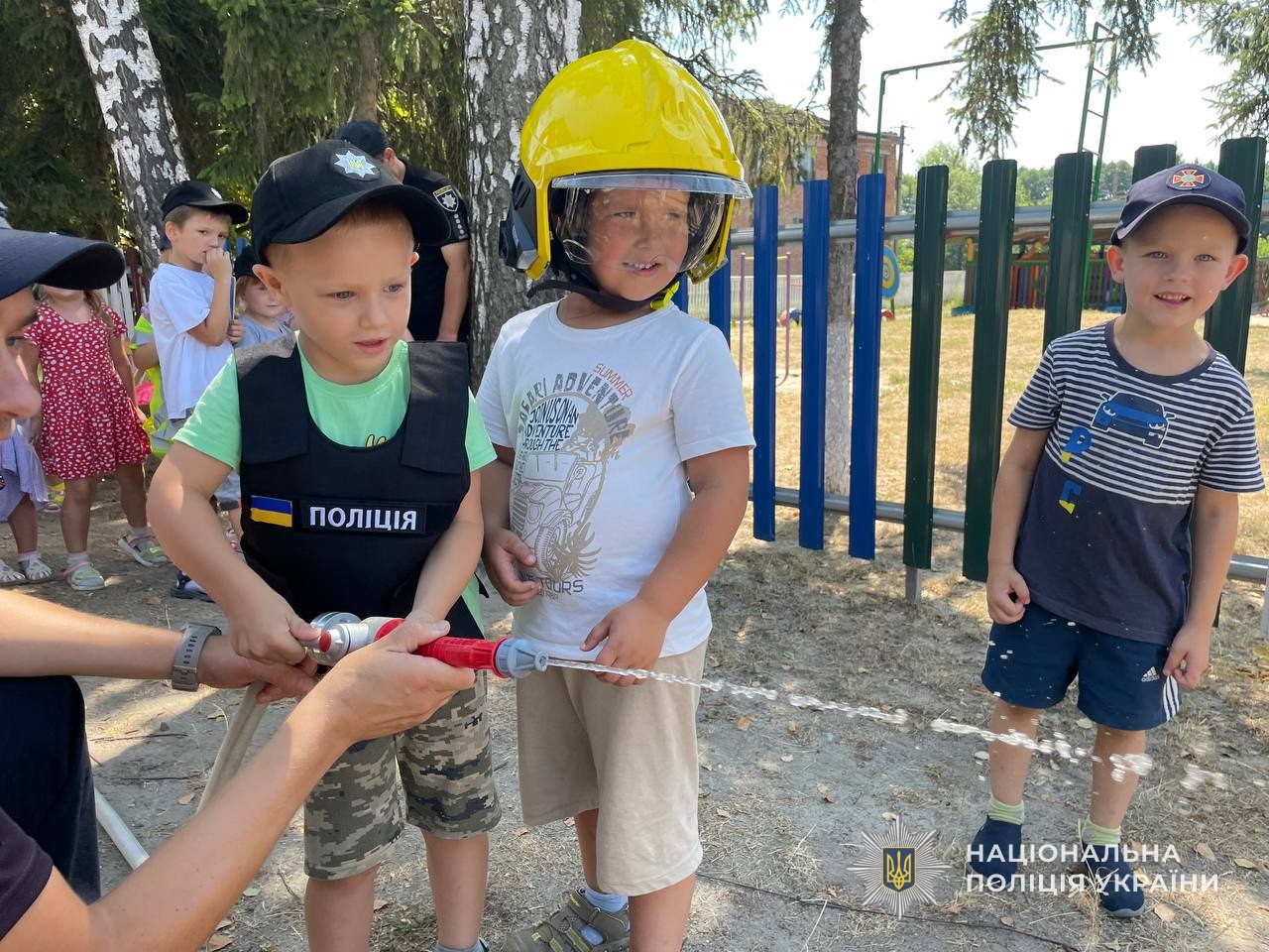 Зокрема, розповіли дітям, як це бути поліцейським та рятувальником. Пояснили, які вони виконують обов'язки та якими спеціальними засобами і транспортом забезпечуються. Також дошкільнята мали можливість приміряти формений одяг обох підрозділів і сфотографуватися на пам'ять.