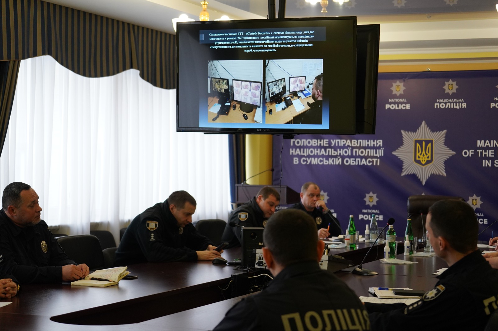 Правоохоронці обмінялись досвідом з колегами з Харківщини, обговорили методи роботи у сфері забезпечення дотримання прав людини під час їх затримання з урахуванням воєнного стану, а також впровадження пілотного проєкту «Custody records» на території Сумської області.