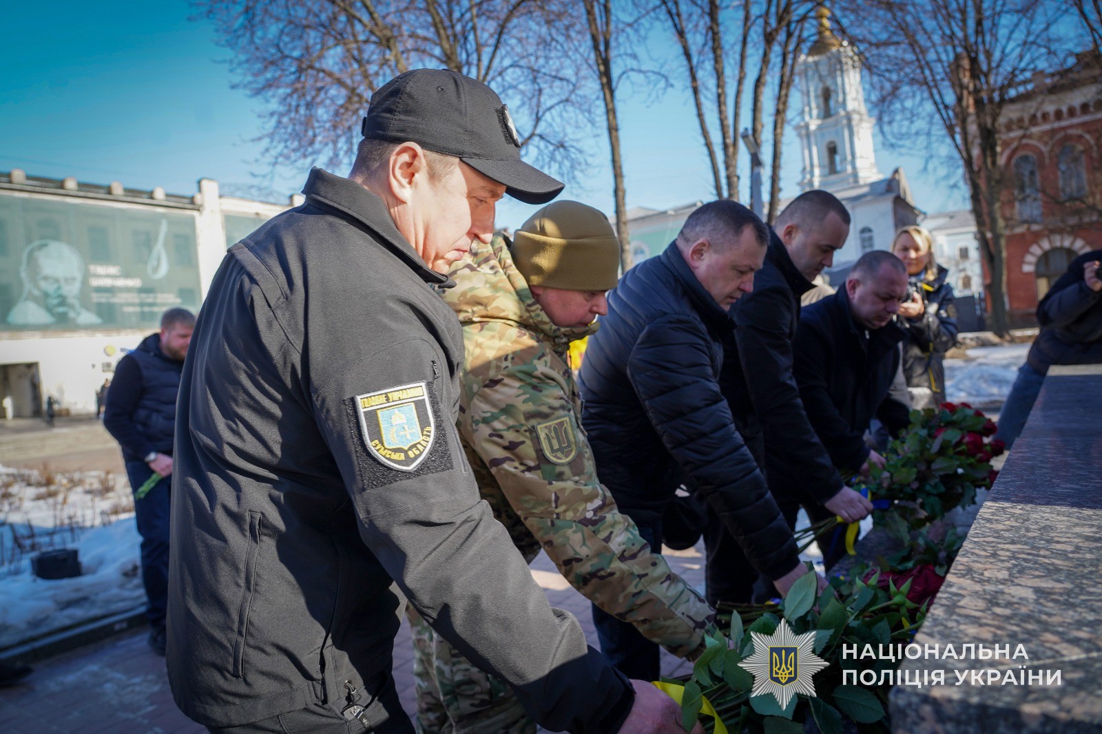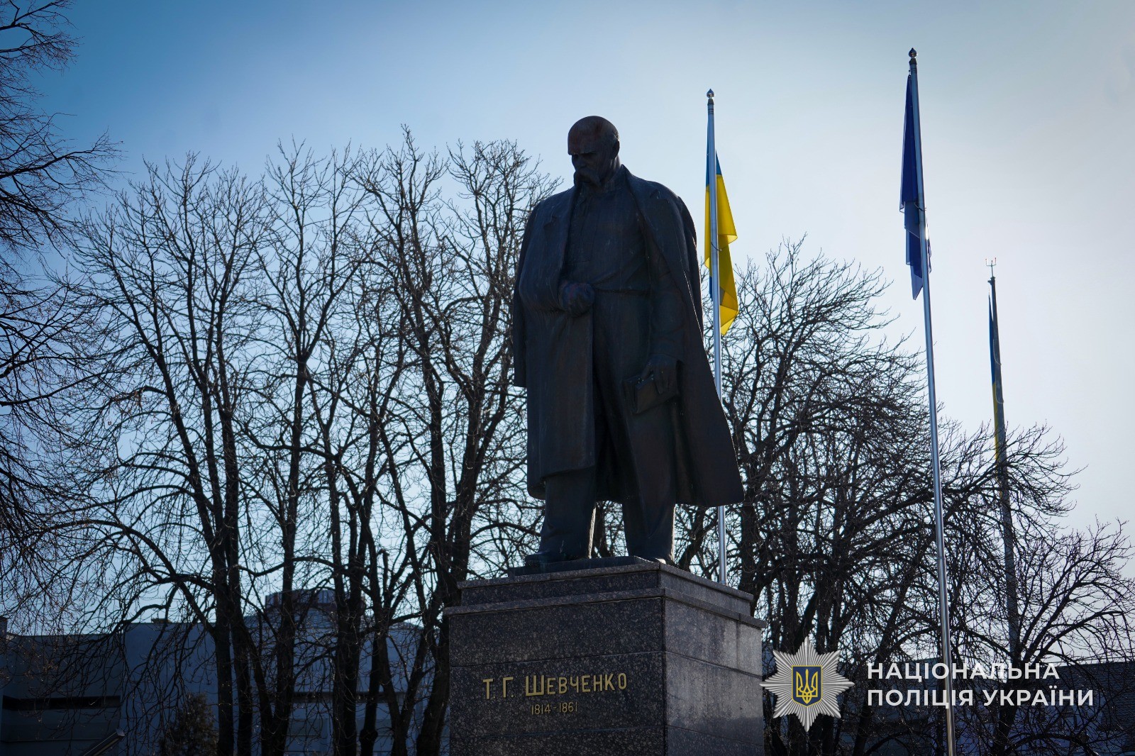 У Сумах біля пам’ятника Тарасу Шевченку представники влади, правоохоронних органів, військовослужбовці та мешканці громади вшанували пам’ять видатного українського поета, художника та громадського діяча. До заходу долучився начальник ГУНП в Сумській області Олег Кашперук.