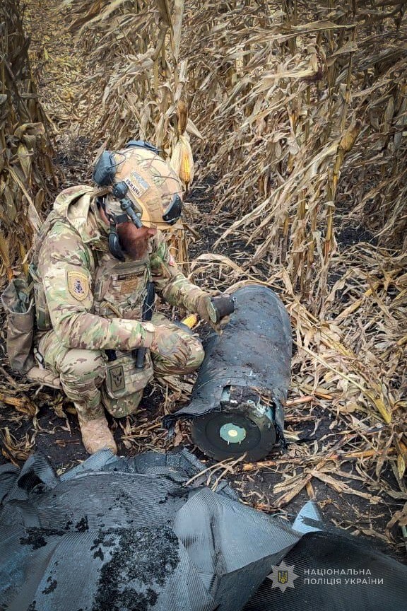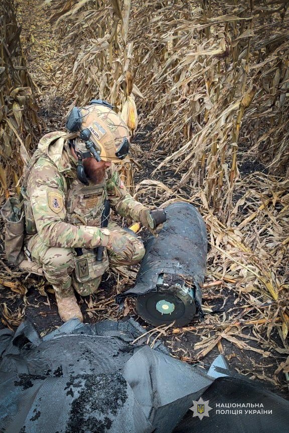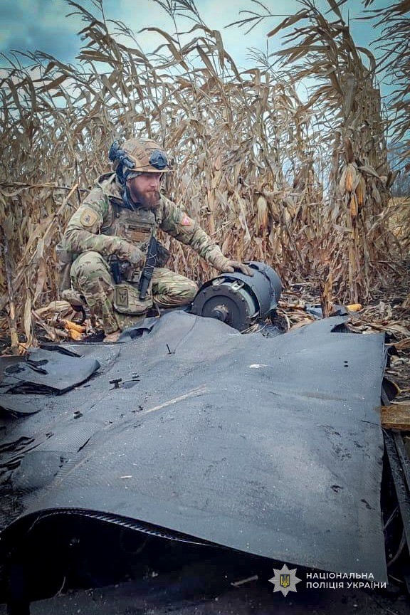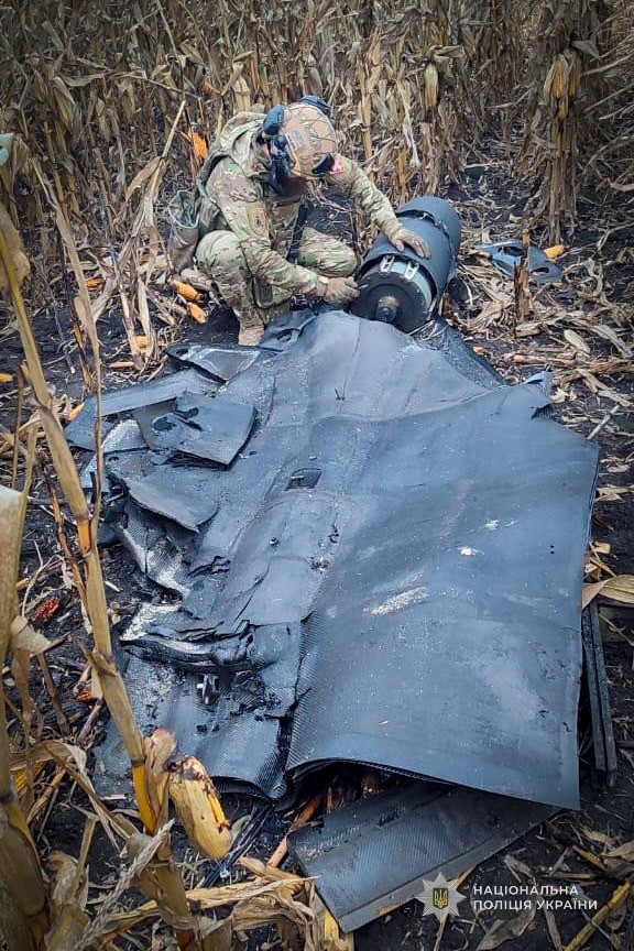 До поліції надійшло повідомлення про виявлення уламків ударного безпілотного літального апарату армії рф, який був збитий силами оборони та впав на полі в одному з районів Сумської області.