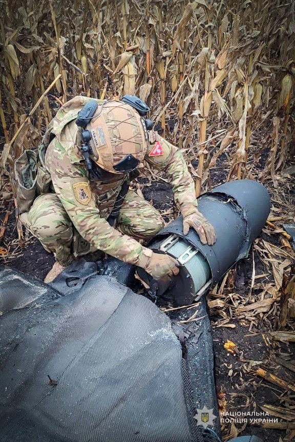 На Сумщині вибухотехніки поліції ліквідували бойовий елемент збитого ворожого безпілотника