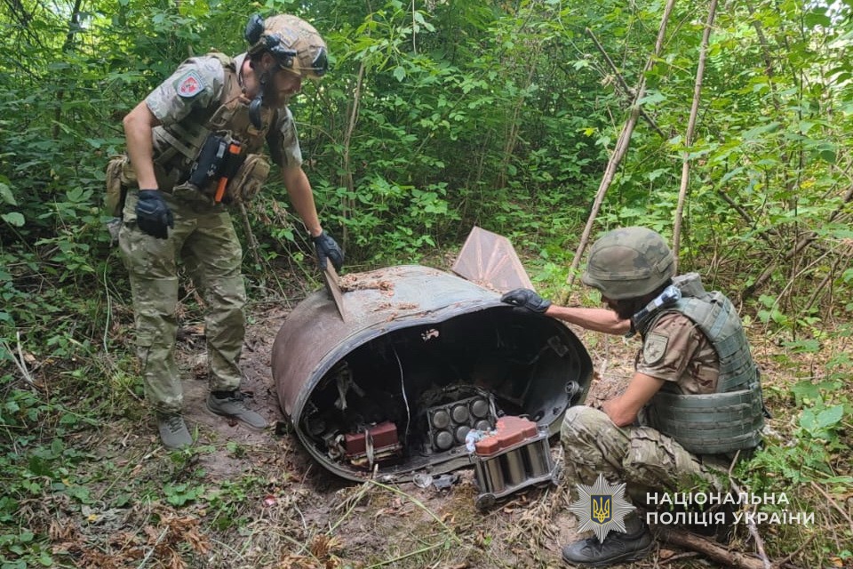 На Сумщині вибухотехніки поліції вилучають рештки російського озброєння, яке може нести небезпеку людям