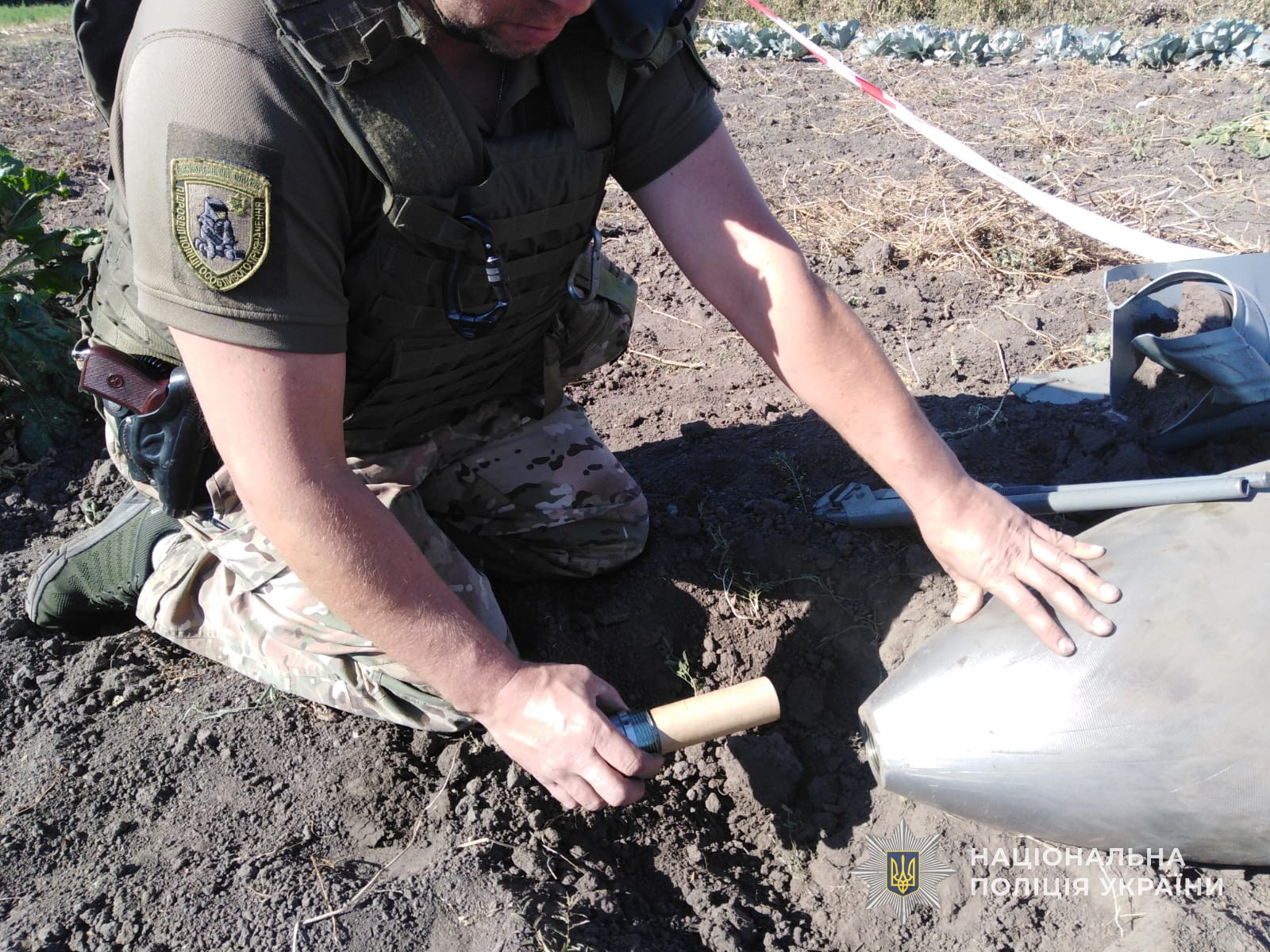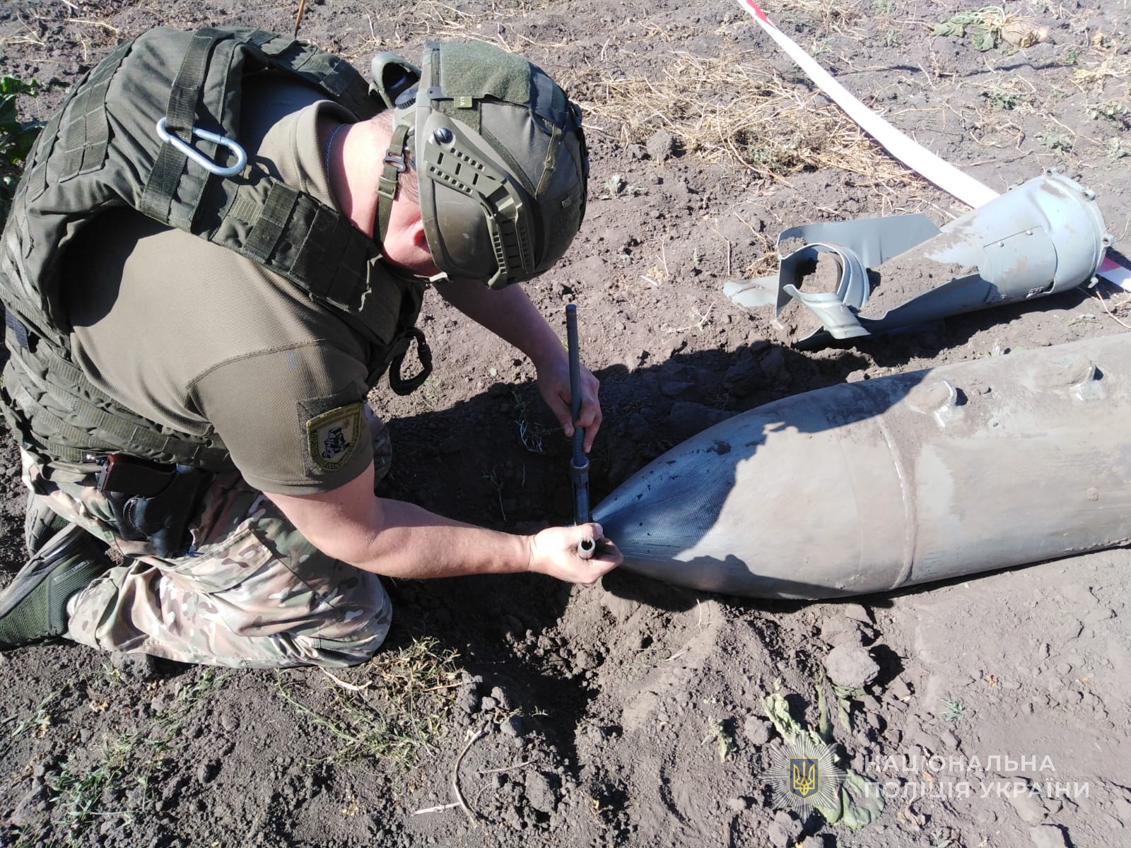 Звільнивши від ґрунту небезпечну знахідку, вибухотехніки поліції провели її знешкодження, а потім, із залученням техніки, вивезли авіаційну бомбу подалі від людських осель на спеціально обладнаний майданчик для знищення.