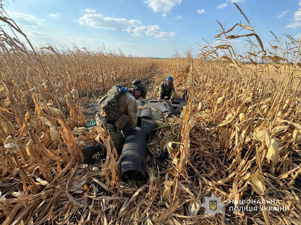 Ударний безпілотний літальний апарат «Шахед» було виявлено місцевими жителями на кукурудзяному полі неподалік одного з сіл Сумської області. Вибухотехніки Головного управління Національної поліції в Сумській області знешкодили бойову частину БПЛА.