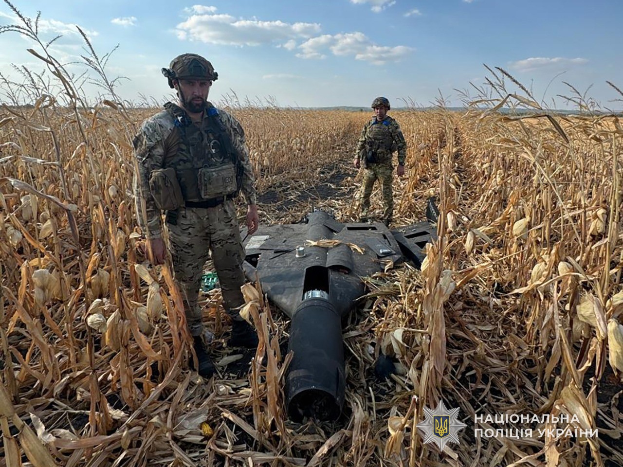 Ударний безпілотний літальний апарат ворога наші захисники приземлили вдало: він упав на полі кукурудзи, не вибухнув і не спричинив пожежі.