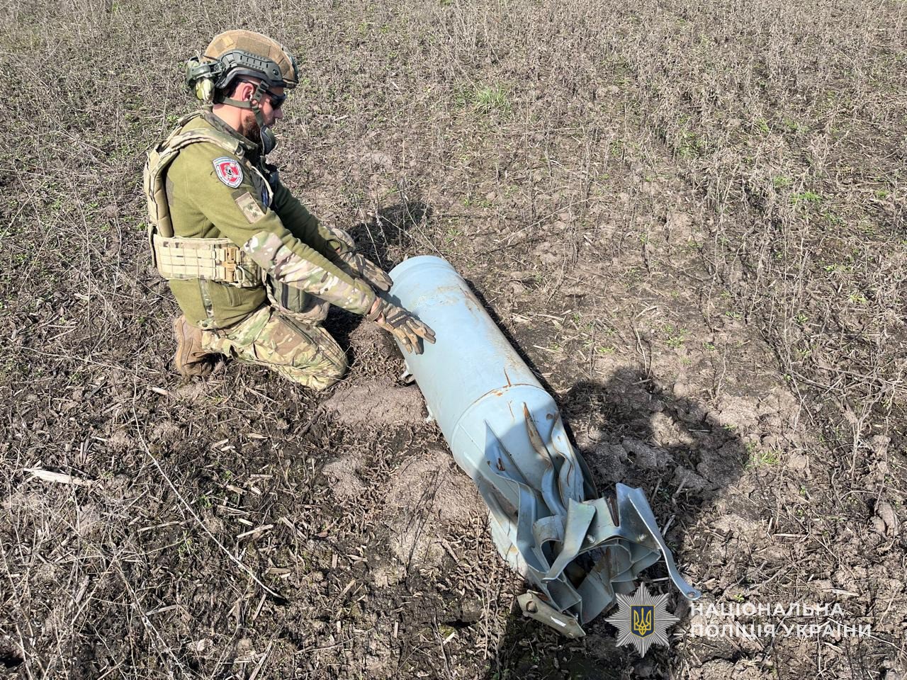 Оглянувши скинутий ворогом на Україну авіаційний снаряд, вибухотехніки поліції визначили, що це авіабомба ФАБ – 250, ще радянського виробництва. Вибухотехніки провели її знешкодження, а потім вивезли бомбу на спеціальний полігон для знищення шляхом контрольованого підриву за допомогою накладного заряду вибухівки.