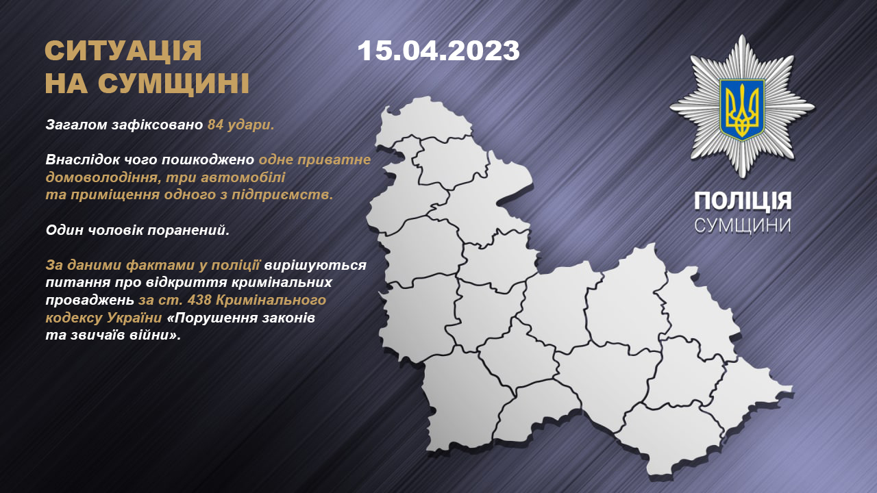 Протягом минулої доби війська рф здійснили 84 удари по прикордонних населених пунктах області.