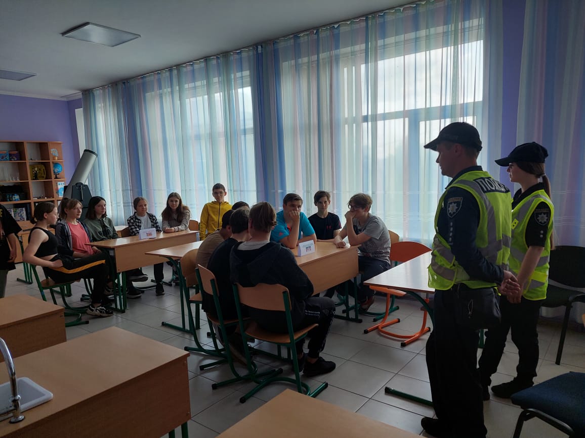 З учнями 10 класу поліцейські провели заняття щодо дотримання правил безпеки під час перебування на дорозі. Правоохоронці докладно розповіли дітям про основні положення Правил дорожнього руху, правила перетину проїзних частин, значення основних дорожніх знаків.