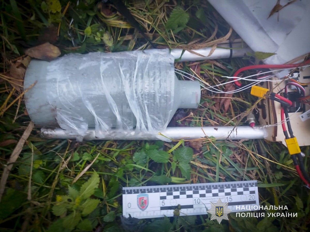 Діставшись до місця падіння безпілотника, вибухотехніки поліції провели знешкодження його бойової частини кумулятивно-фугасно-уламкової дії вагою понад три кілограми, вивезли її у спеціально відведене місце та знищили шляхом підриву.