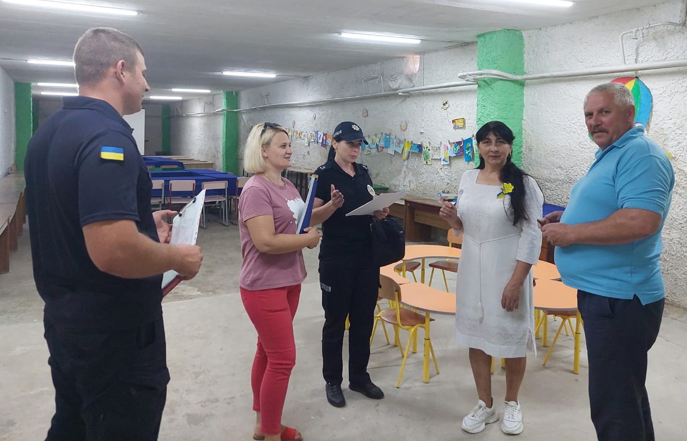 Так, протягом останніх декількох днів працівник поліції разом з представниками відділу освіти, ДСНС та Держпродспоживслужби відповідно до рішення органу місцевого самоврядування перевіряли готовність укриттів навчальних закладів до розміщення в них дітей з початком навчального року.