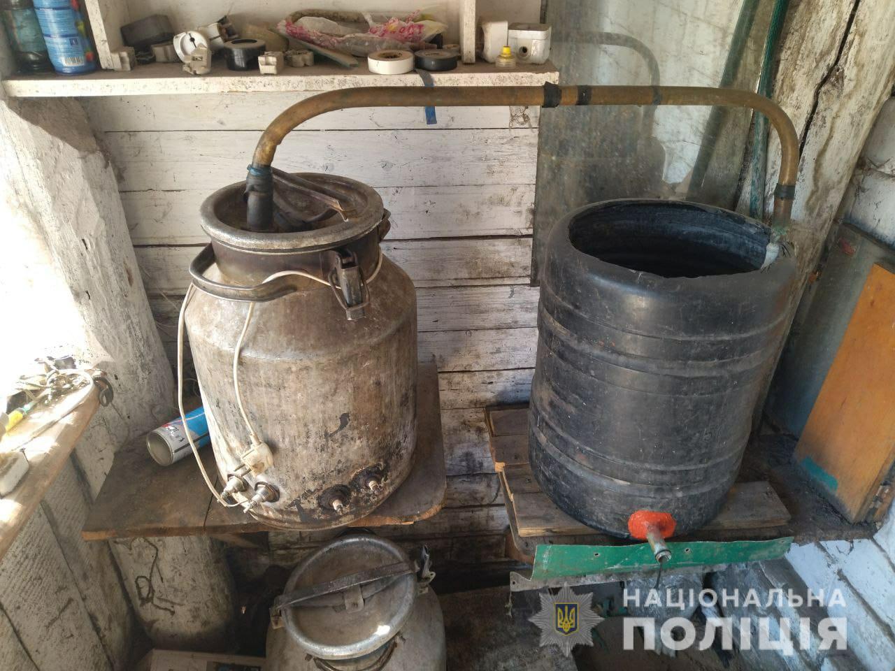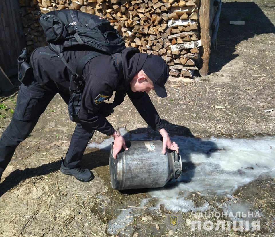 Три самогонні апарати, кілька десятків літрів закваски для виготовлення домашньої горілки та 50 літрів саморобного спиртного знайшли і знищили дільничні офіцери Ямполя у жителів села.