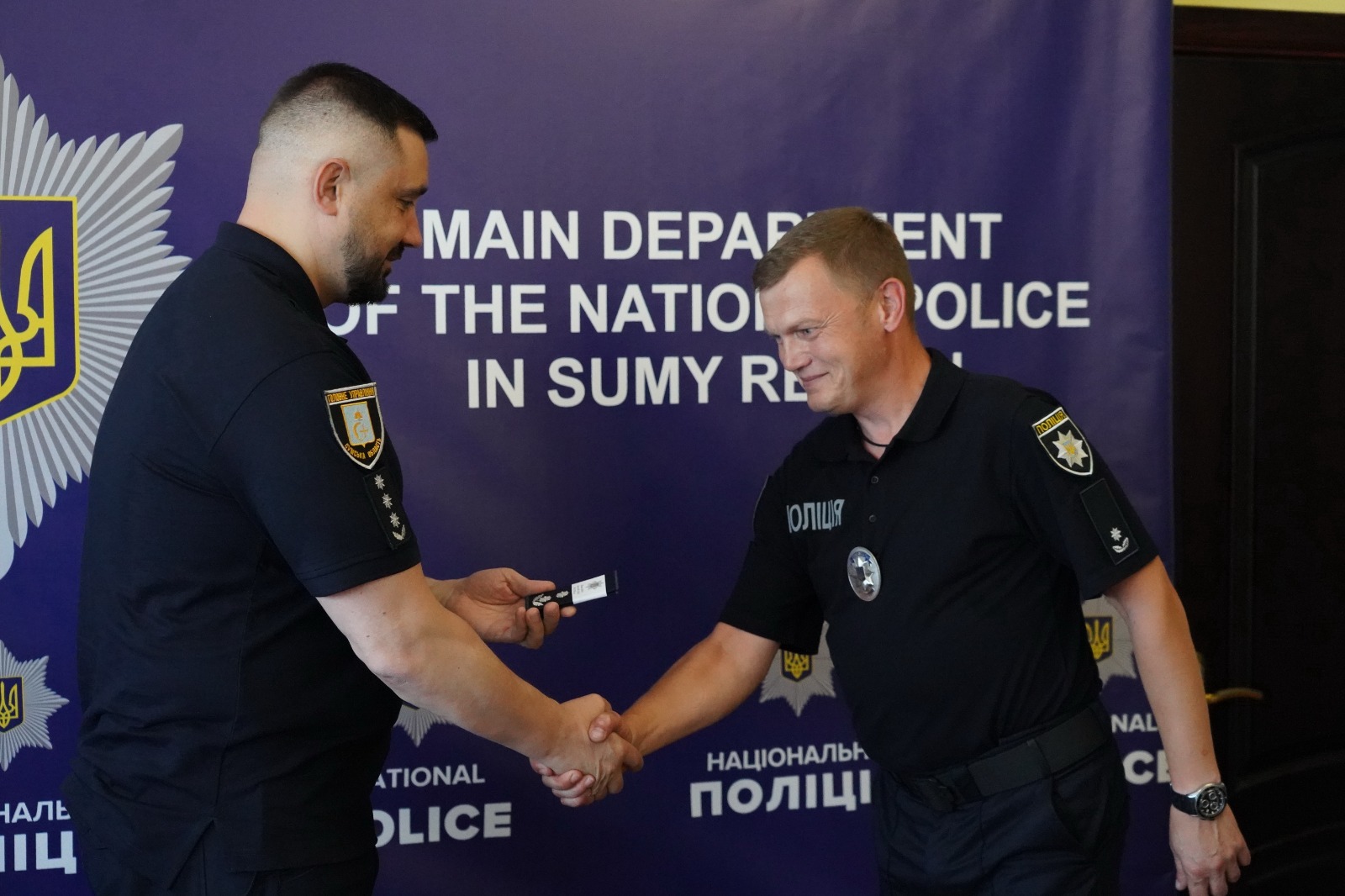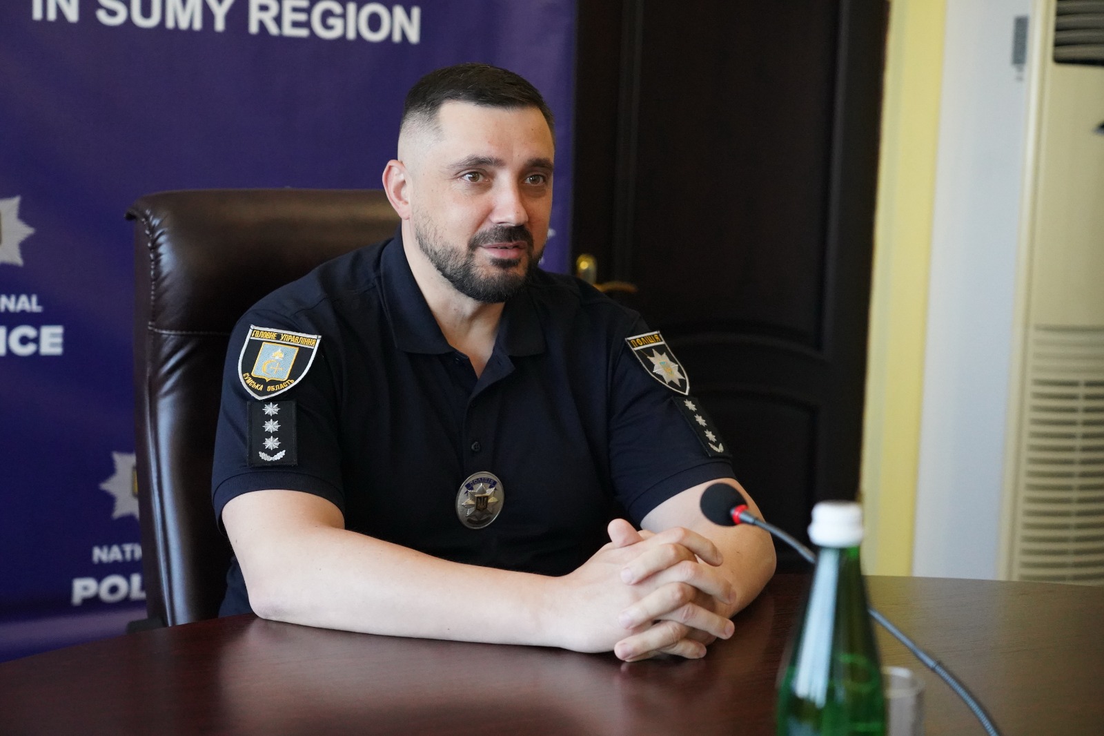 Наступним з вітальним словом до присутніх виступив заступник начальника ГУНП В Сумській області Максим Калатур, який також привітав колег та побажав терпіння, мужності, добробуту, впевненості, а також успіхів у професійному житті.